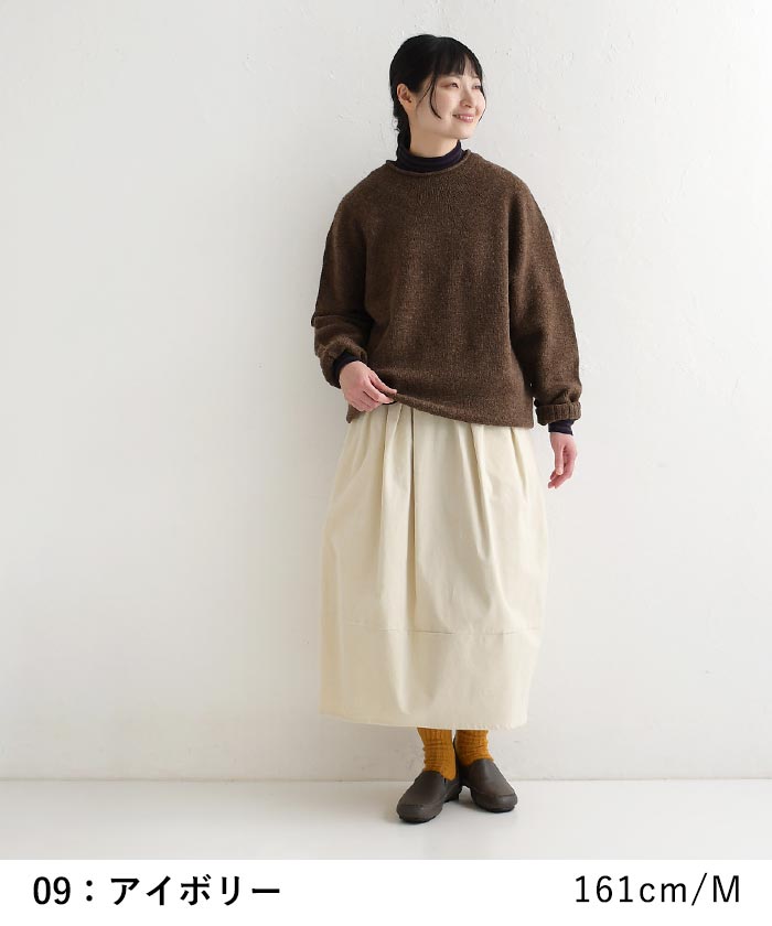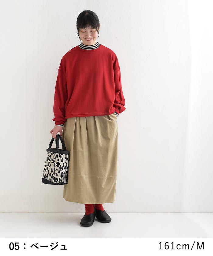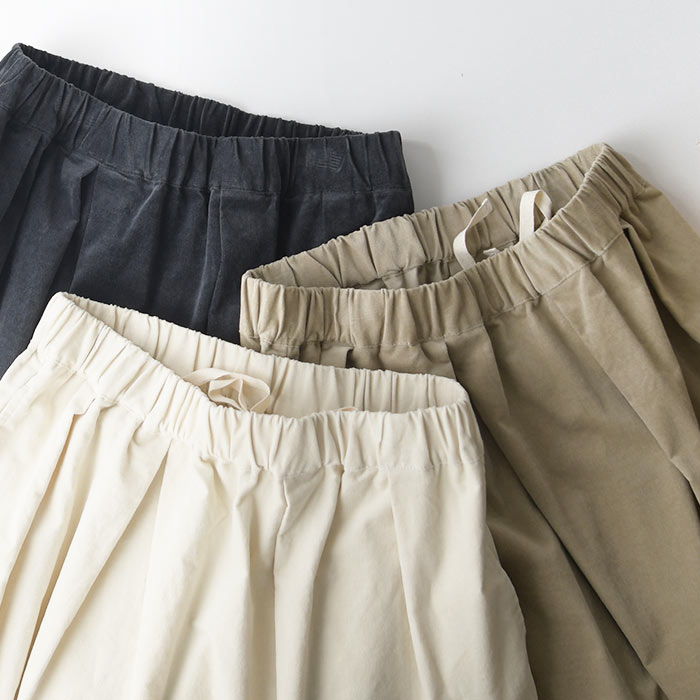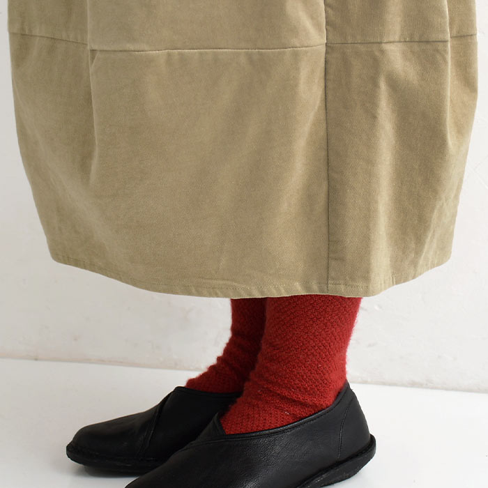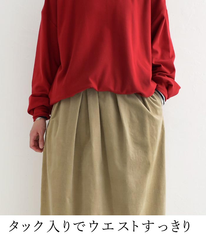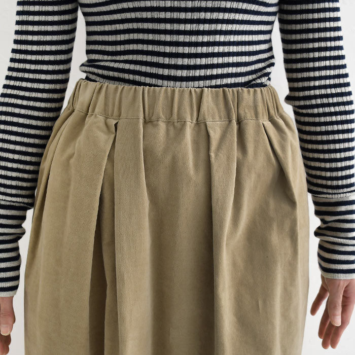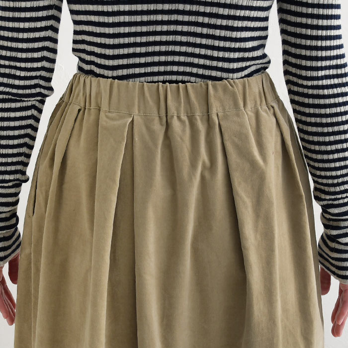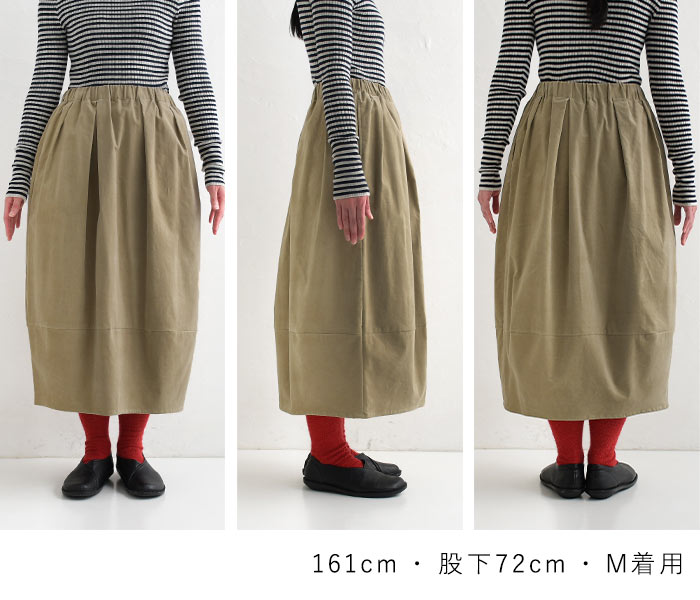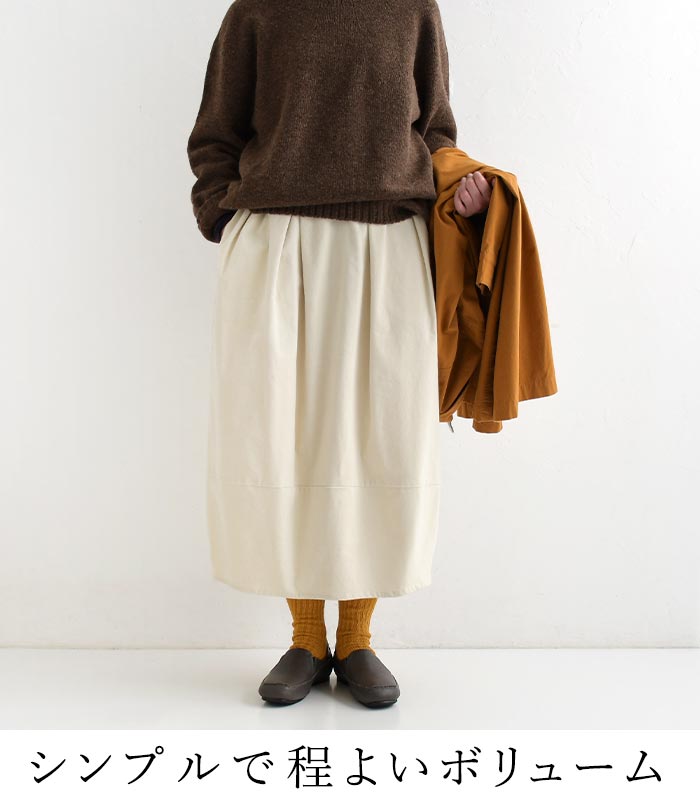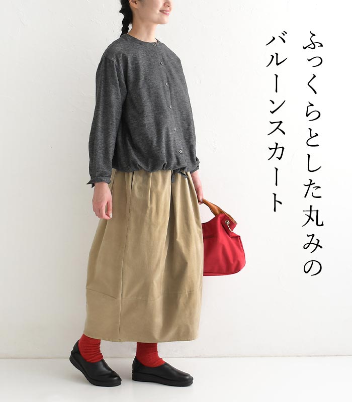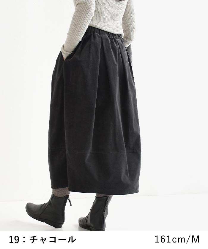 M〜3L コットン別珍 バルーンスカート ロング レディース ベルベット 綿/ 着後レビューでクーポン☆ カジュアル ナチュラル 体型カバー ゆったり ストレッチ ウエストゴム ボトムス あったか 無地 エコロコ オリジナル e+, Ms,Ls,LL,3L,/ 秋 冬 大きいサイズ 24AW1004,