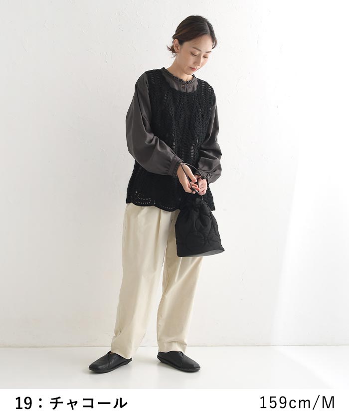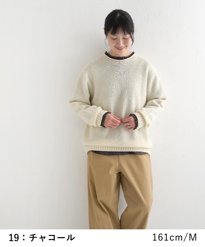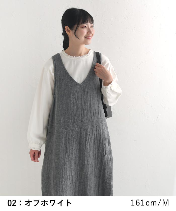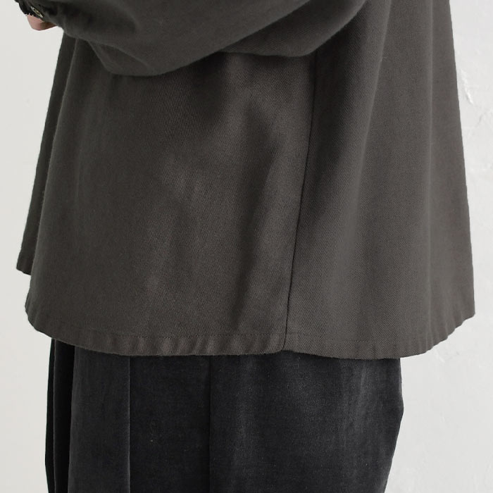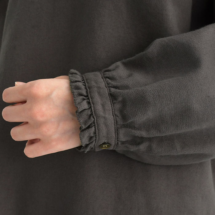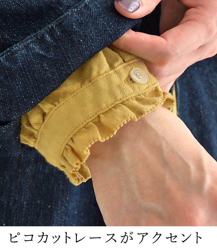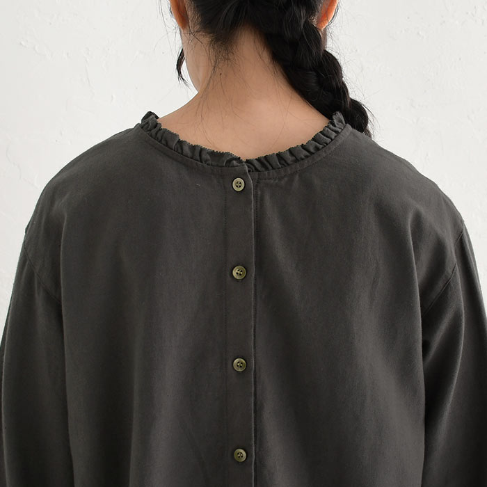 【メール便送料無料】 M〜3L フリル襟 前後2way ブラウス シャツ 長袖 レディース 綿麻 ウール/ 着後レビューでクーポン☆ カジュアル ナチュラル 体型カバー ストレッチ トップス おしゃれ 無地 エコロコ オリジナル e+, Ms, Ls, LL, 3L,/ 大きいサイズ 24AW1004,