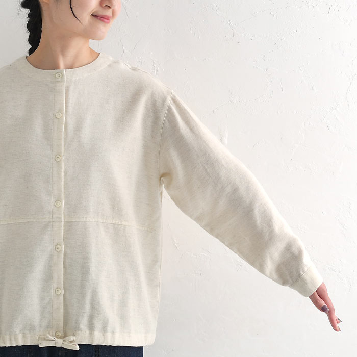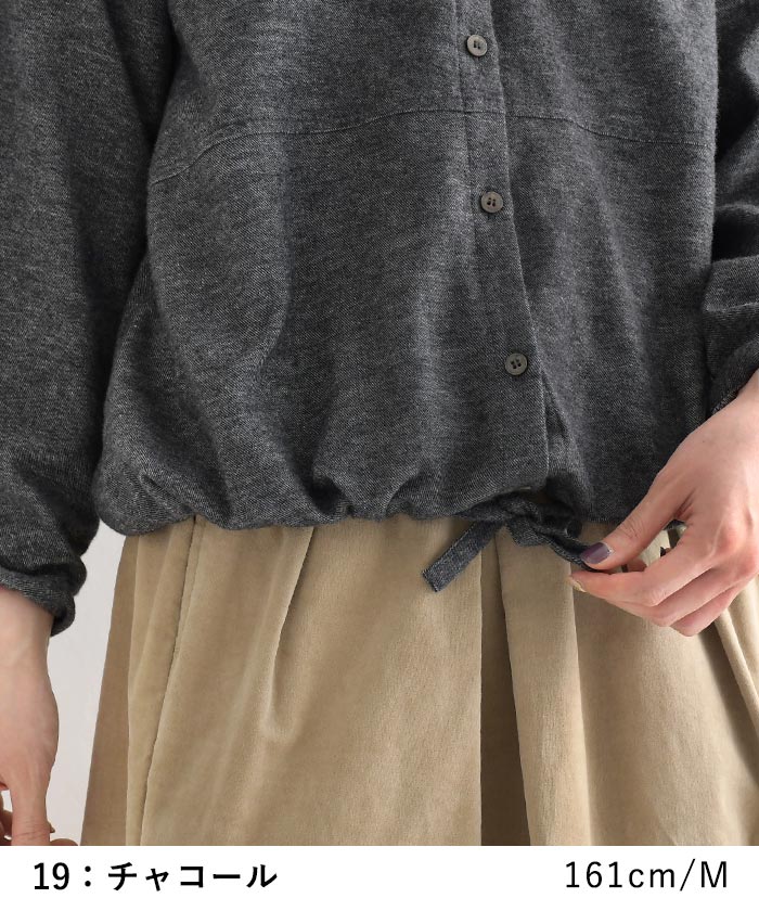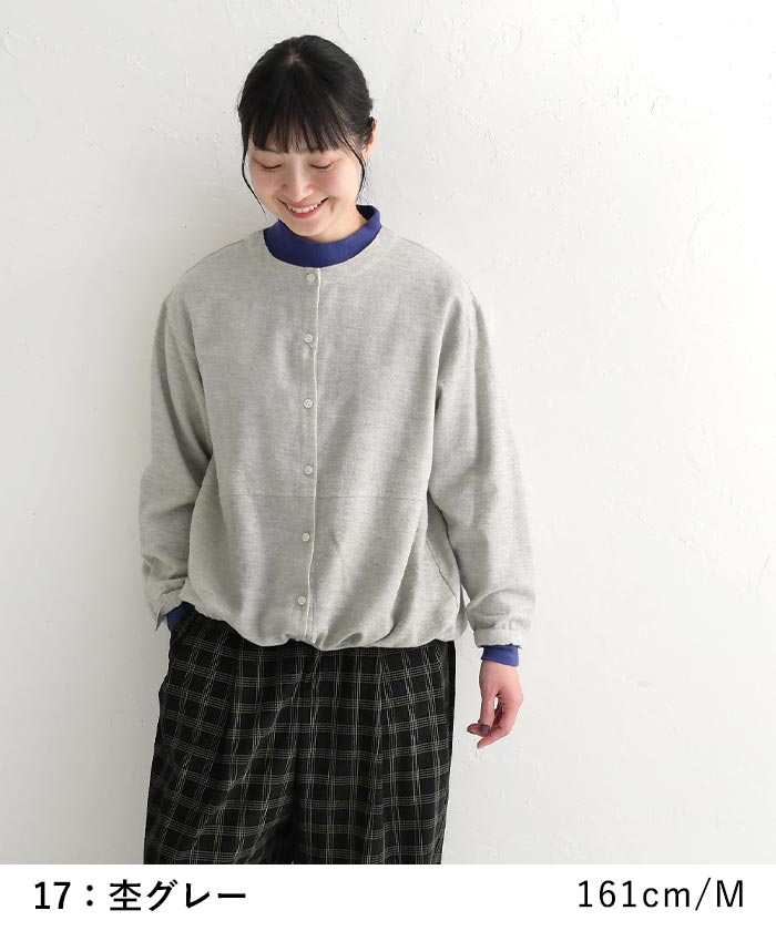 M〜3L 起毛 ブラウス シャツ 羽織り 前開き 長袖 レディース 綿100%/ 着後レビューでクーポン☆ カジュアル ナチュラル コットン カーディガン 体型カバー ゆったり トップス エコロコ e+, Ms,Ls,LL,3L,/ 秋冬 大きいサイズ 24AW1011,
