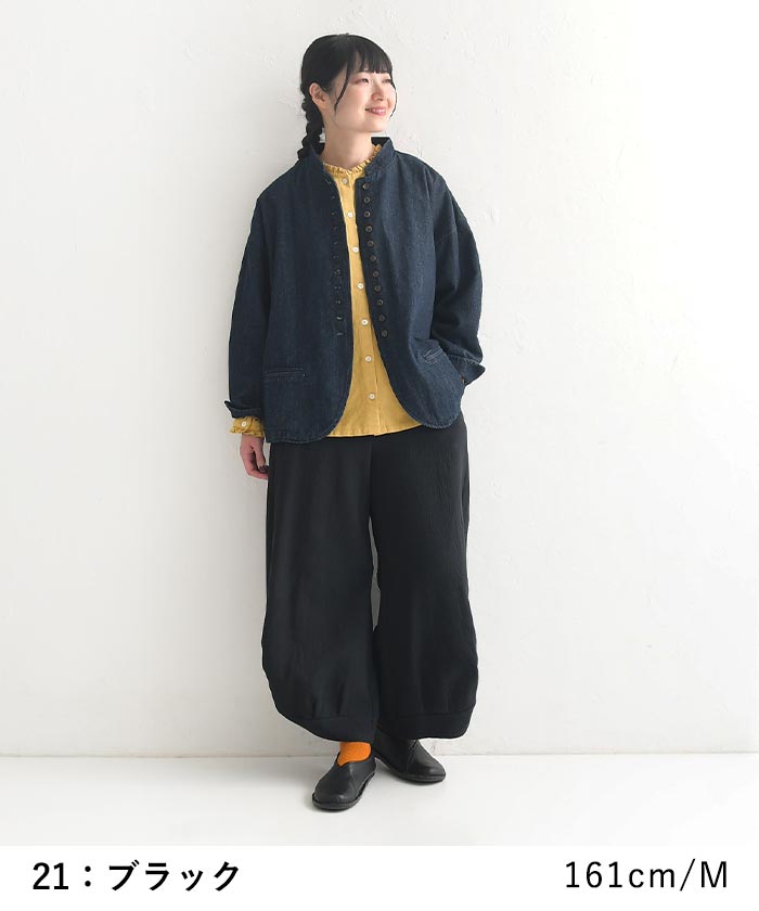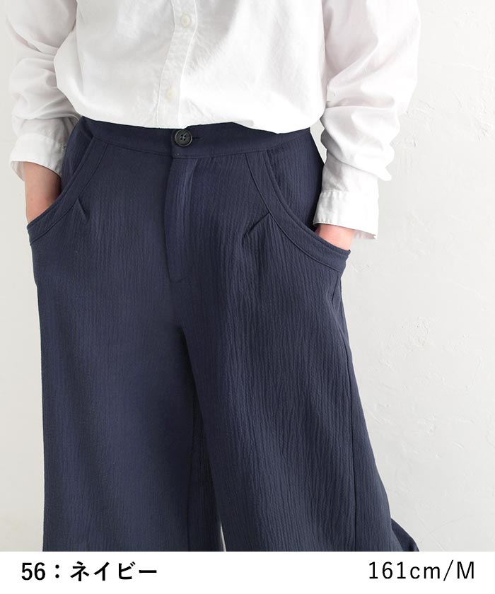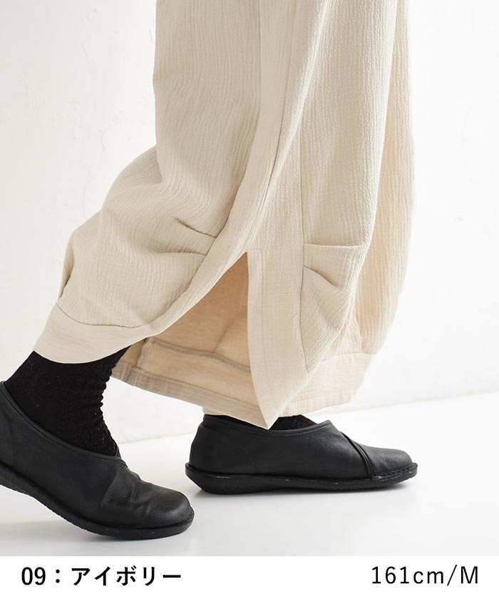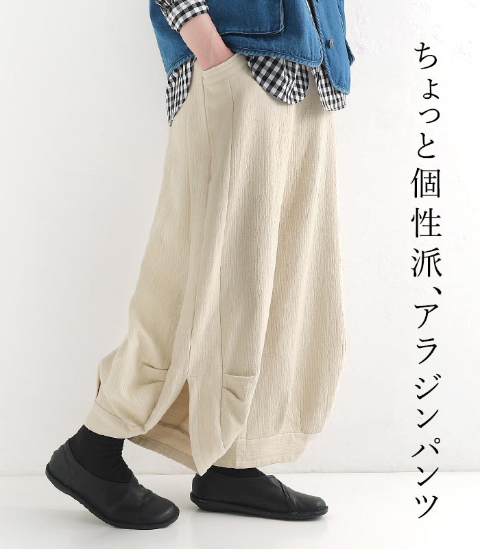 M〜3L ワイド アラジンパンツ レディース 裏起毛 スリット入り 綿麻ガーゼ接結/ 着後レビューでクーポン☆ カジュアル ナチュラル リネン コットン 無地 体型カバー ゆったり ボトムス エコロコ e+, Ms,Ls,LL,3L,/ 秋冬 大きいサイズ 24AW1011,