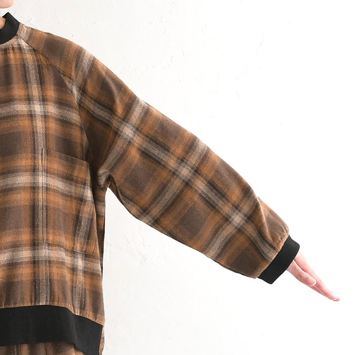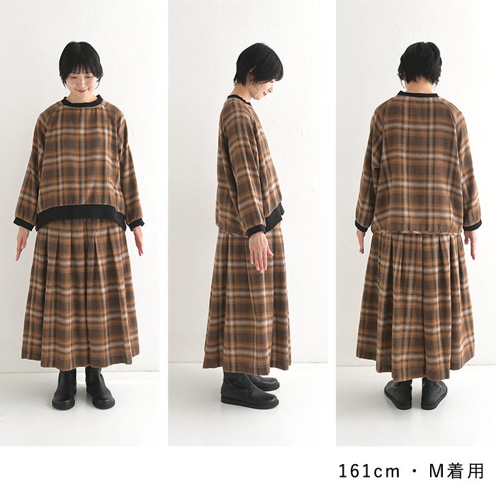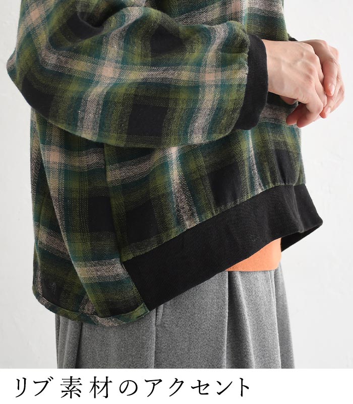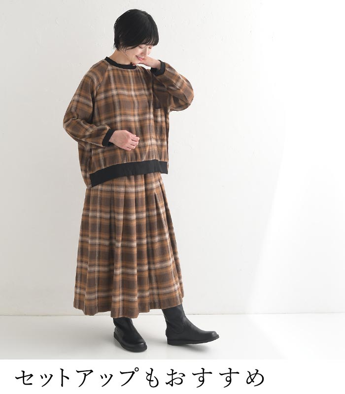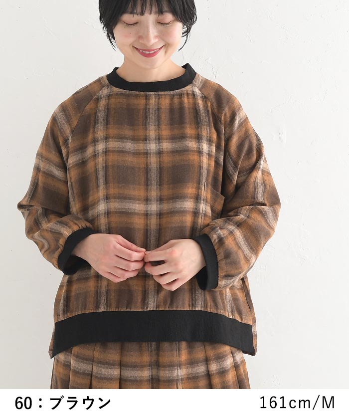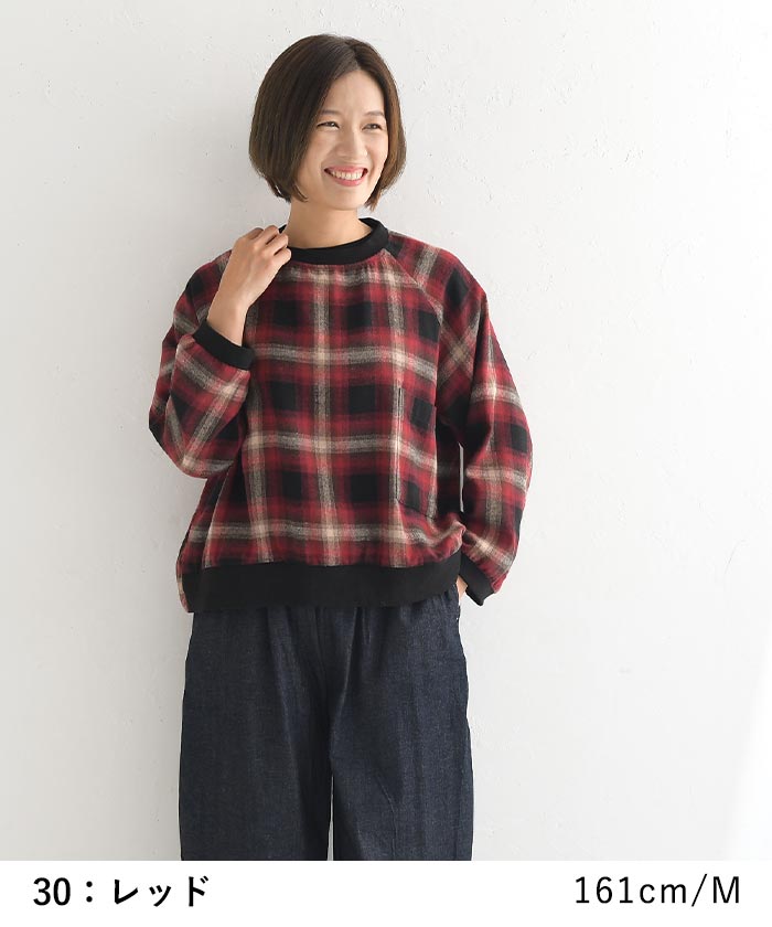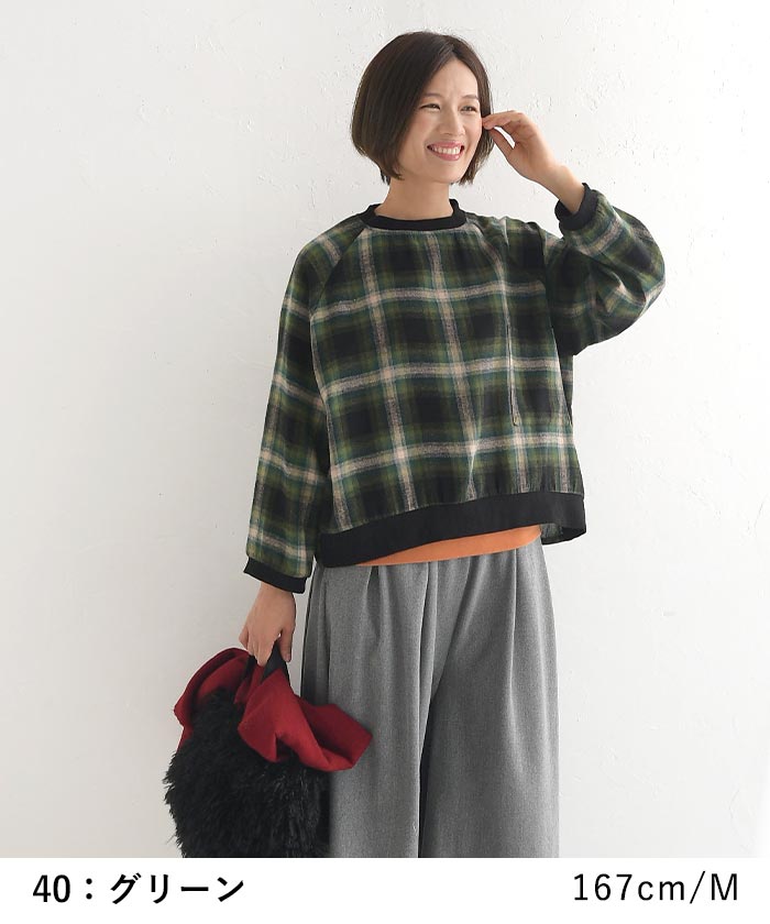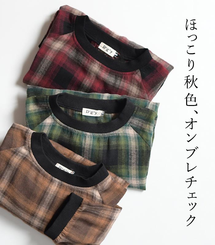 M〜3L プルオーバー 長袖 レディース オンブレチェック柄 綿 起毛 D*g*y dgy 綿100%/ カジュアル ナチュラル コットン 体型カバー ゆったり トップス あったか 大人可愛い エコロコ sel, z+ 30代 40代 50代/ 秋冬 大きいサイズ 24AW1101, ギフト プレゼント 贈り物