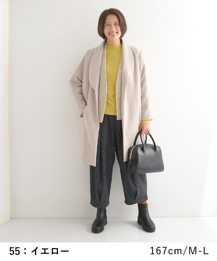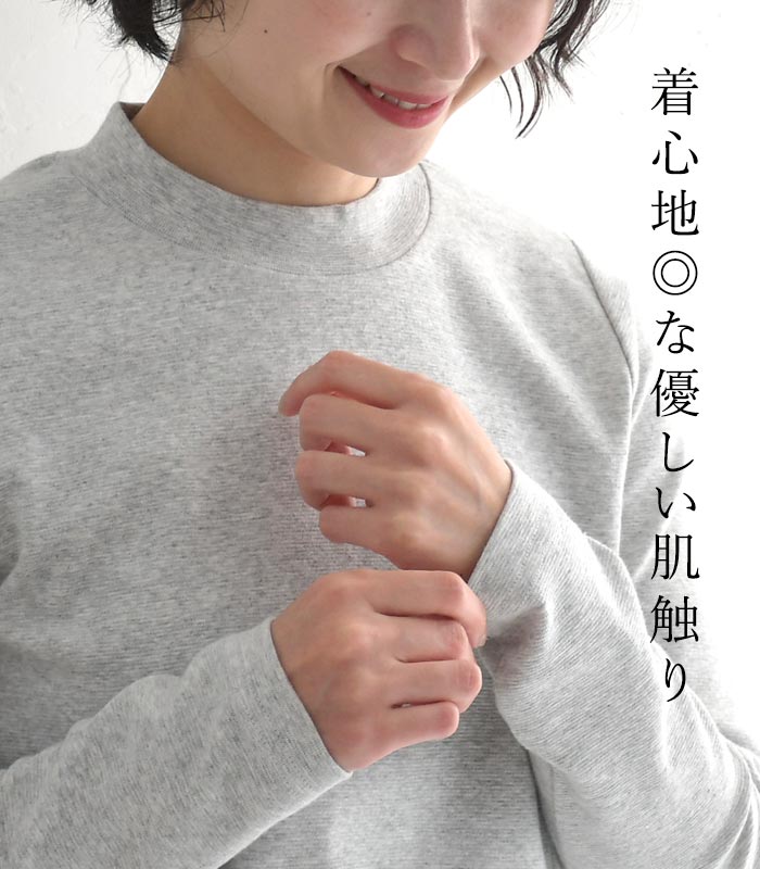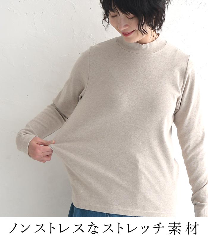 M〜3L ハイネック ストレッチ カットソー レディース 綿 重ね着 差し色 / カジュアル ナチュラル シンプル コットン 体型カバー ゆったり ふんわり 長袖 トップス 無地 エコロコ sel, Ms, Ls, LL, 3L, 30代 40代 50代/ 春 秋冬 24AW1219,