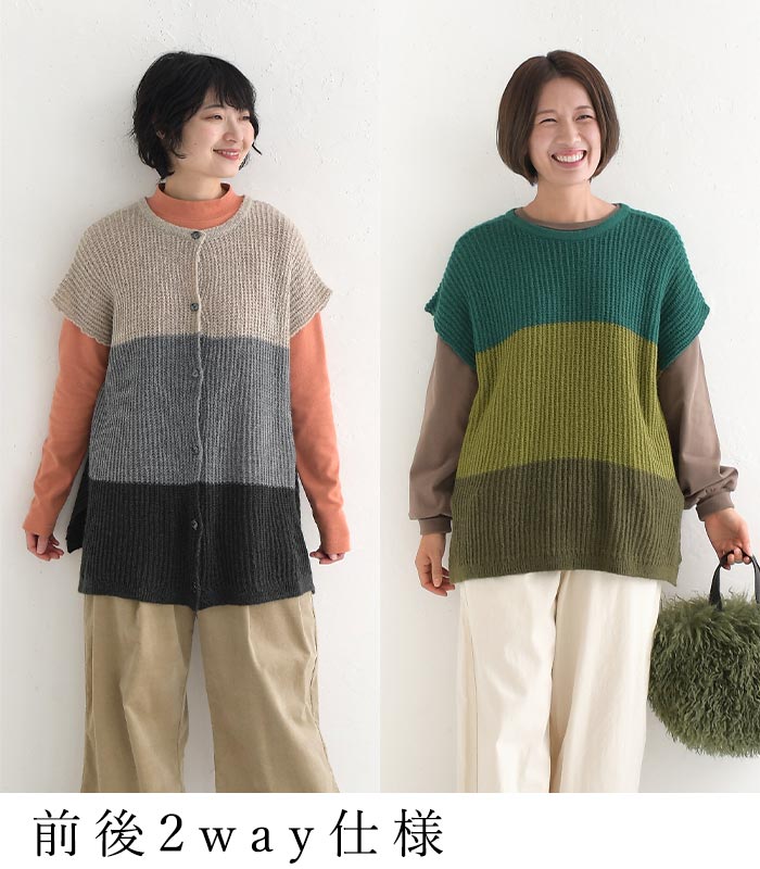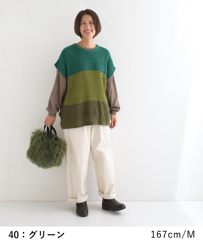 M〜3L 日本製 ベスト レディース D*g*y 前後2way カラー切り替え 配色/ カジュアル ナチュラル 体型カバー ゆったり dgy トップス あったか おしゃれ 大人可愛い エコロコ sel, Ms, Ls, LL, 3L, 30代 40代 50代/ 秋冬 大きいサイズ 24AW1227,