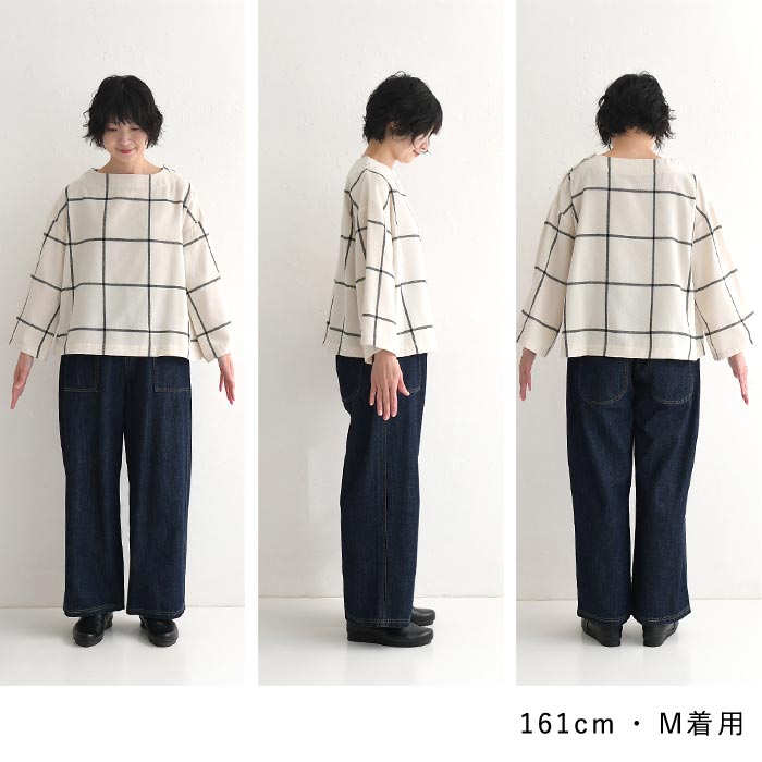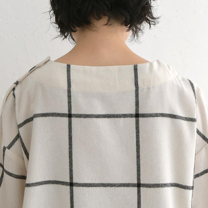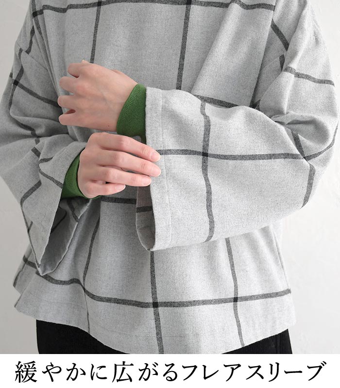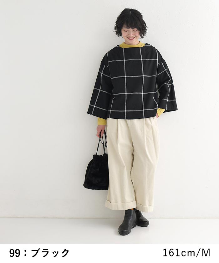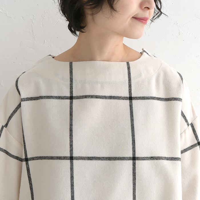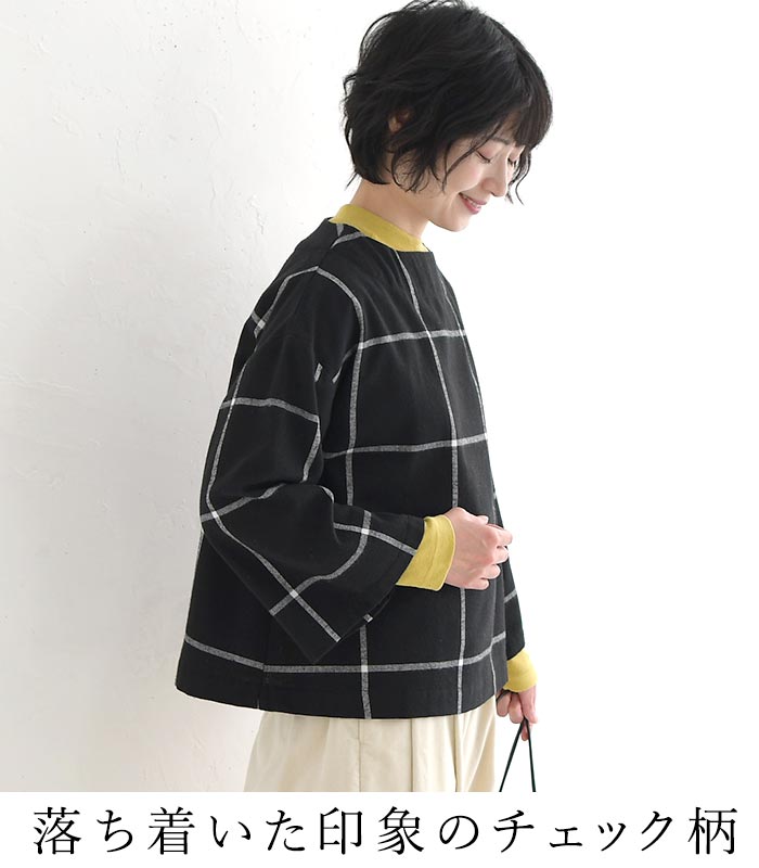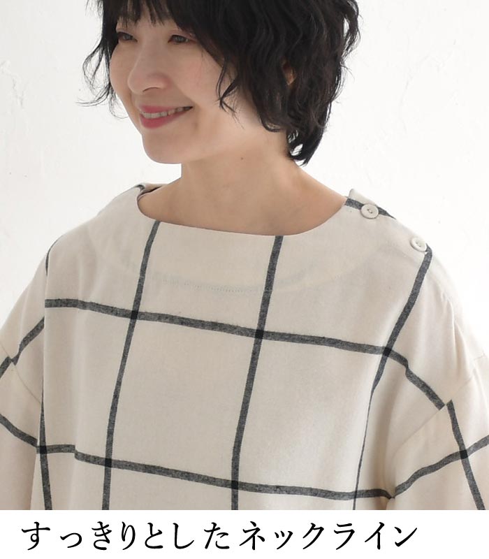 M〜3L D*g*y プルオーバー 長袖 レディース ウインドウペン 起毛 チェック柄 綿/ カジュアル ナチュラル ブラウス ワイド 体型カバー ゆったり dgy 大人可愛い トップス エコロコ sel, Ms,Ls,LL,3L, 30代 40代 50代/ 秋 冬 大きいサイズ 24AW0109,