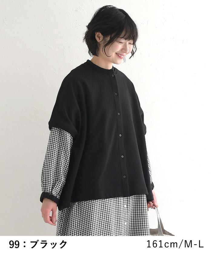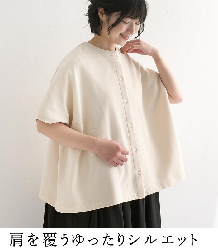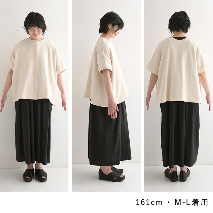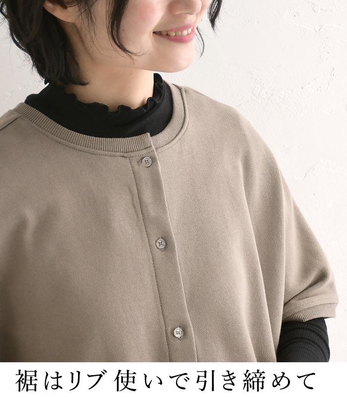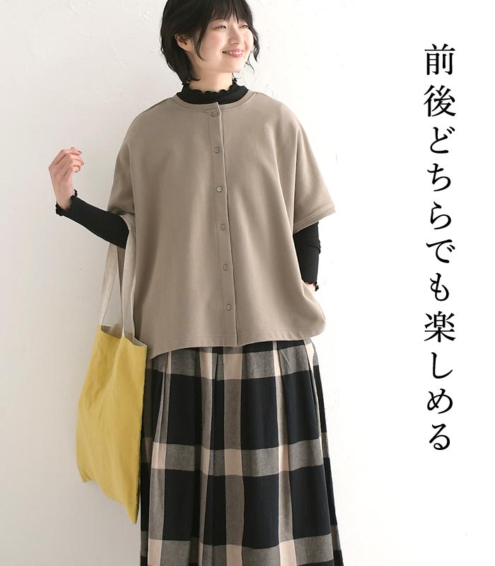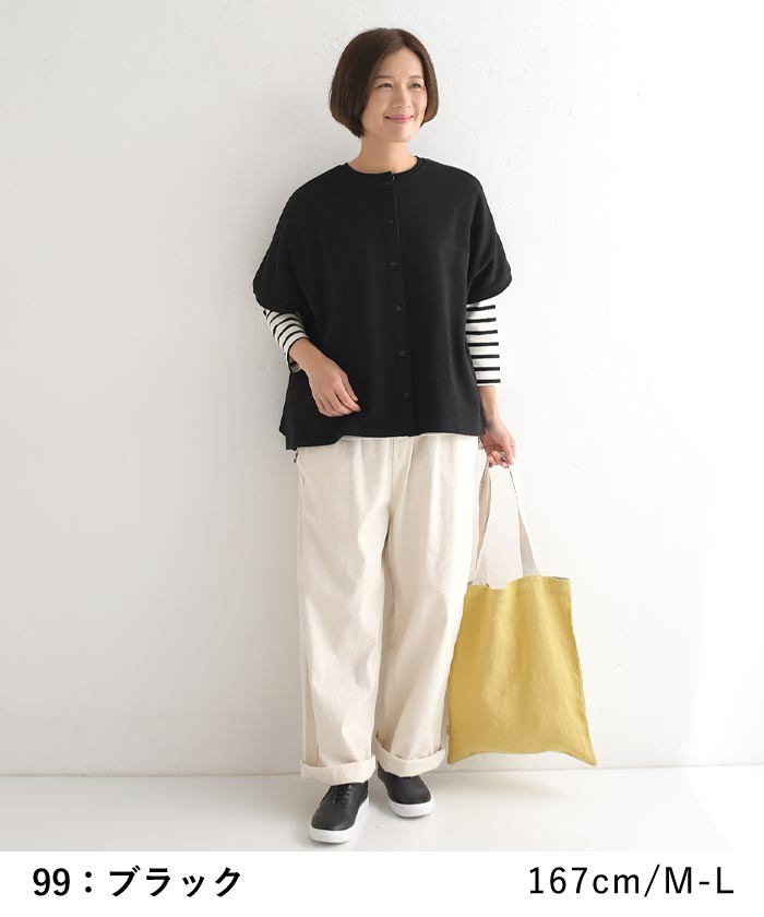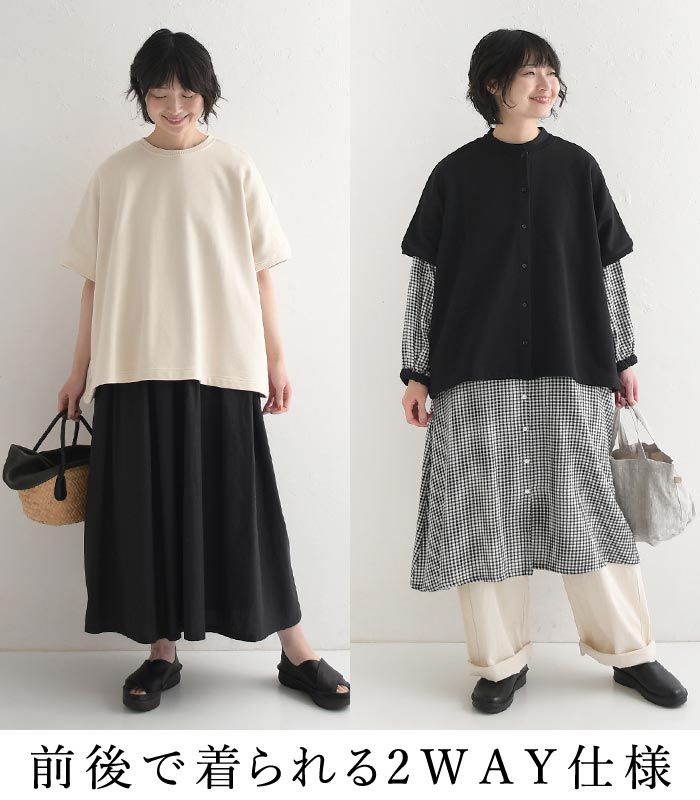 M〜3L ベスト 前後2way レディース ワイド ミニ裏毛 半袖 5分袖 綿100%/ カジュアル ナチュラル シンプル コットン ゆったり トップス 大人可愛い 無地 エコロコ sel, Ms, Ls, LL, 3L, 30代 40代 50代/ 春 夏 秋 大きいサイズ 25SS0207,