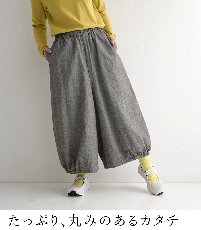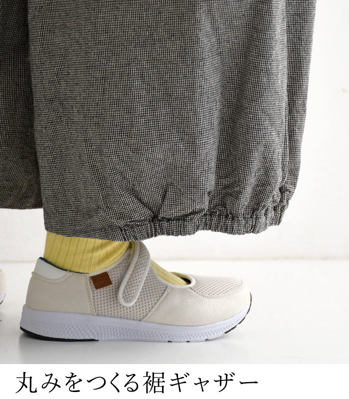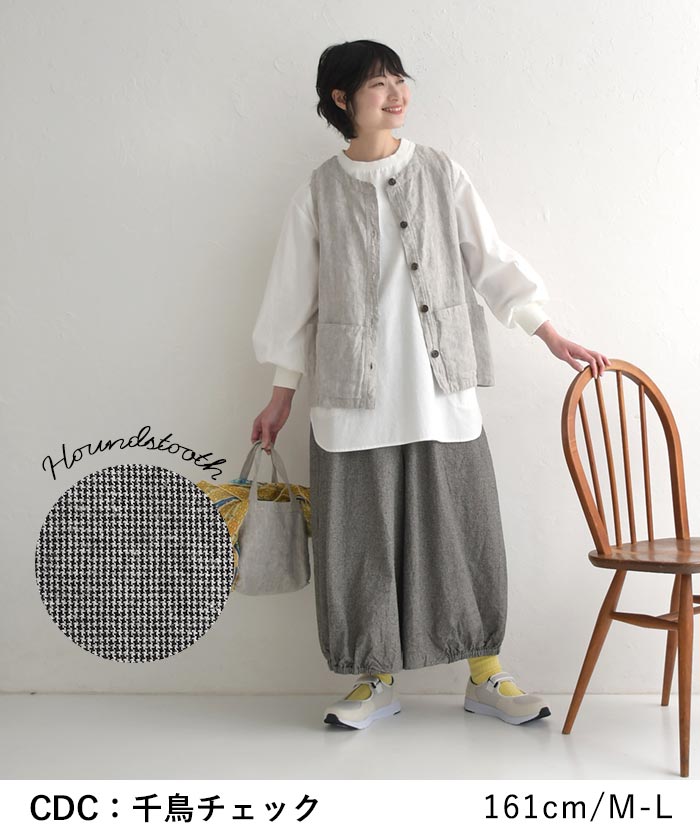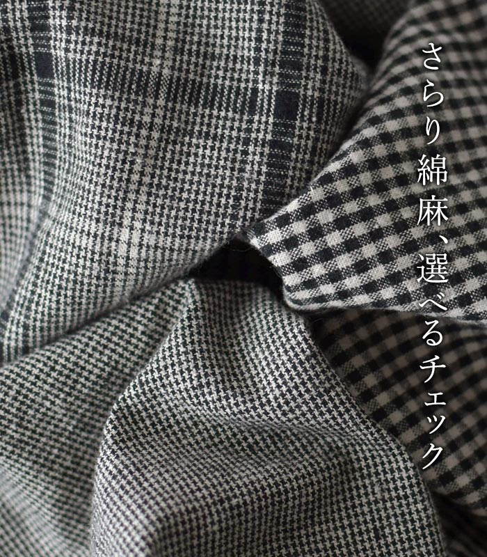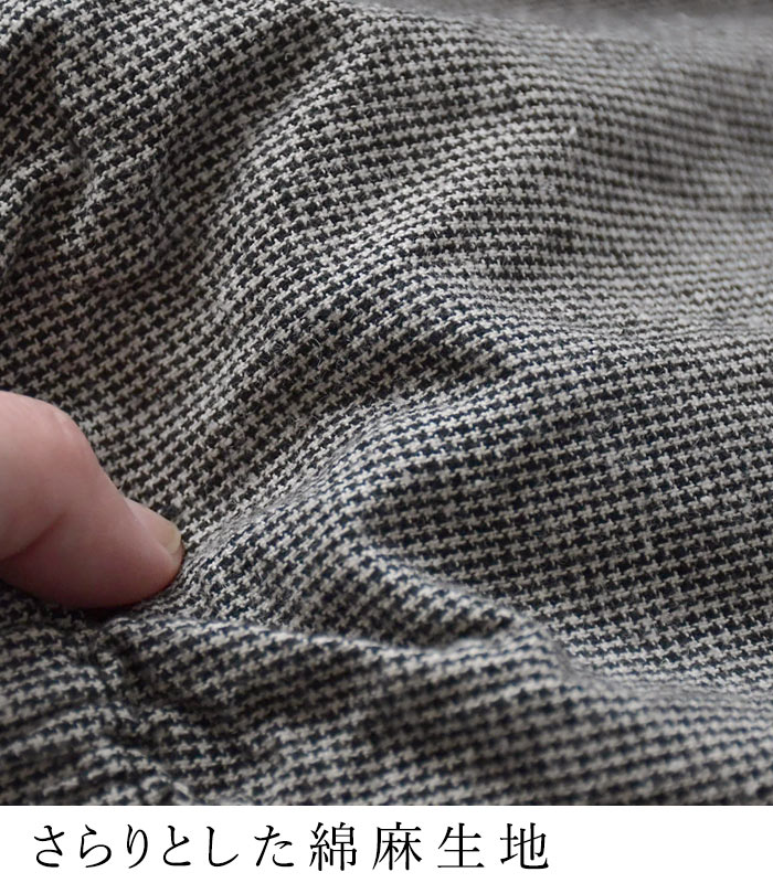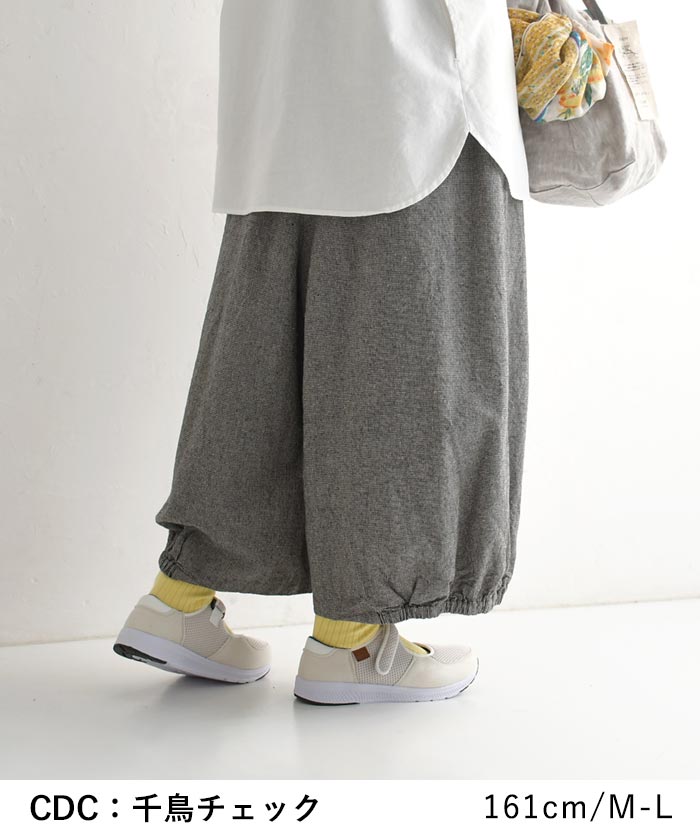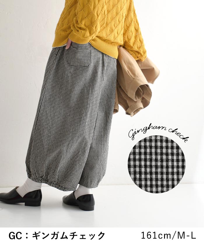 M〜3L 綿麻 3種のチェック バルーンパンツ ワイド レディース / 着後レビューでクーポン☆ カジュアル ナチュラル リネン コットン 体型カバー ゆったり ロング 10分丈 ウエストゴム ボトムス エコロコ e+, Ms,Ls,LL,3L,/ 春 夏 秋 大きいサイズ 25SS0219,