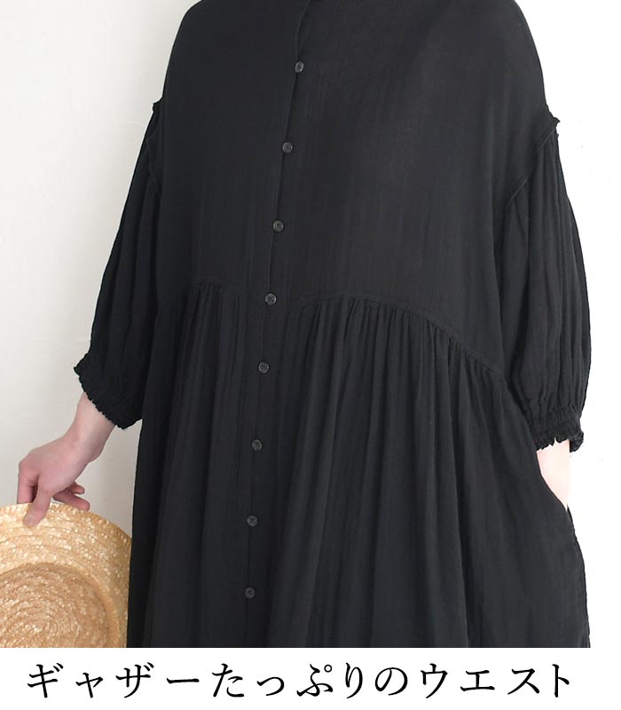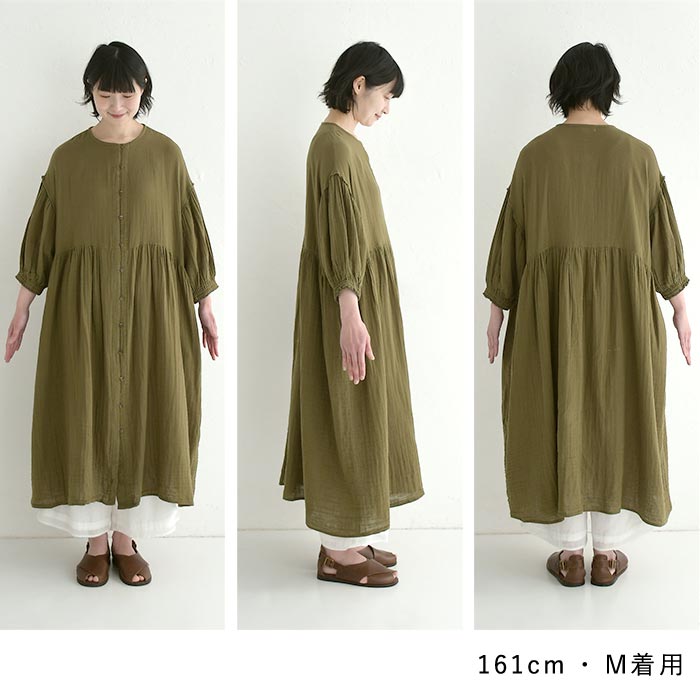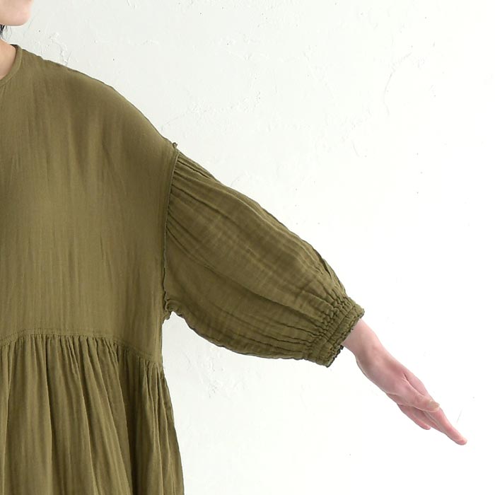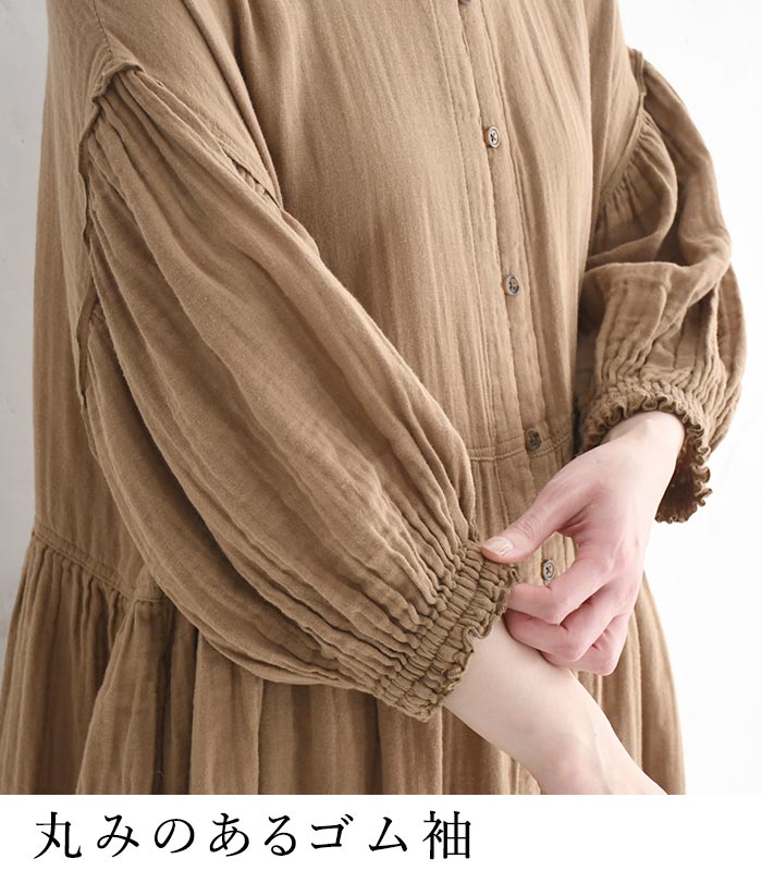 ワンピース ロング レディース 涼しい コットン ダブルガーゼ バルーン袖 D*g*y 綿100%/ カジュアル ナチュラル フレア ギャザー 長袖 dgy おしゃれ 大人可愛い エコロコ sel, 30代 40代 50代/ 秋 春夏 大きいサイズ 25SS0411,