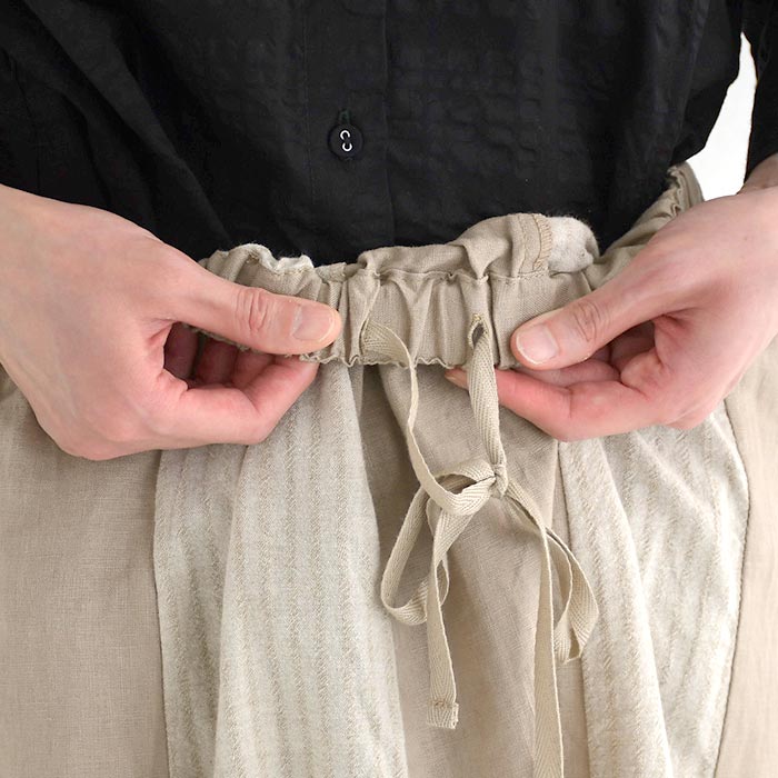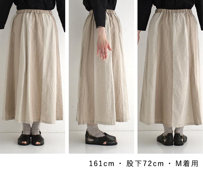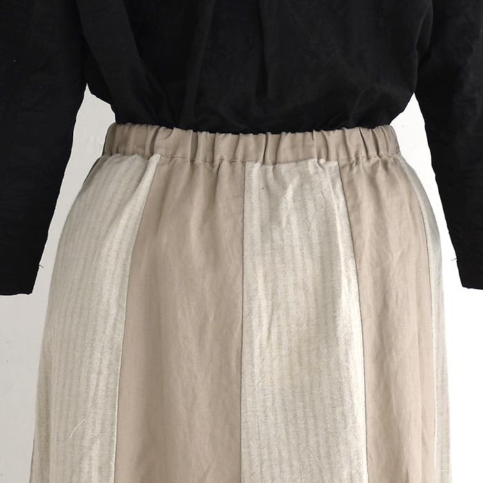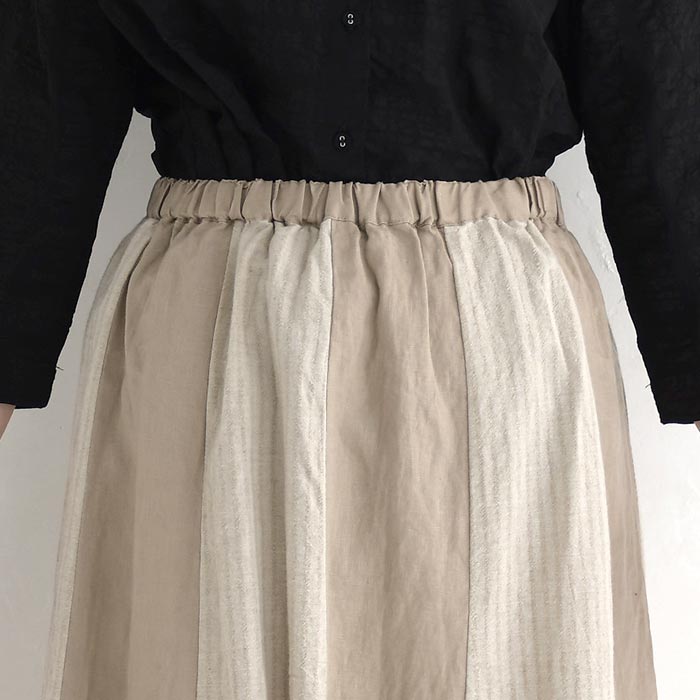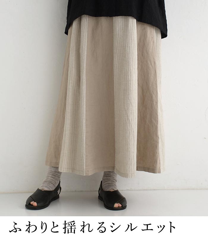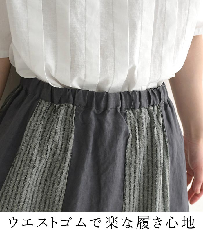 スカート ロング レディース 涼しい D*g*y 麻オックス 綿ドビー ストライプ配色 綿 麻/ カジュアル ナチュラル ワイド リネン コットン 体型カバー ゆったり Aライン ふんわり dgy ウエストゴム ボトムス おしゃれ 大人可愛い エコロコ sel,/ 春夏 25SS0604,
