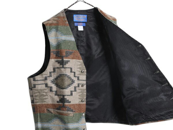 90s USA製 ペンドルトン ネイティブ 総柄 ラグ べスト メンズ L オールド PENDLETON HIGH GRADE WESTERN WEAR 前開き ウール ブランケット| 古着 中古 90's 90年代 アメリカ製 ネイティブ柄 重ね着 ウールベスト ライナー付き ポケット付き コンチョボタン マルチカラー