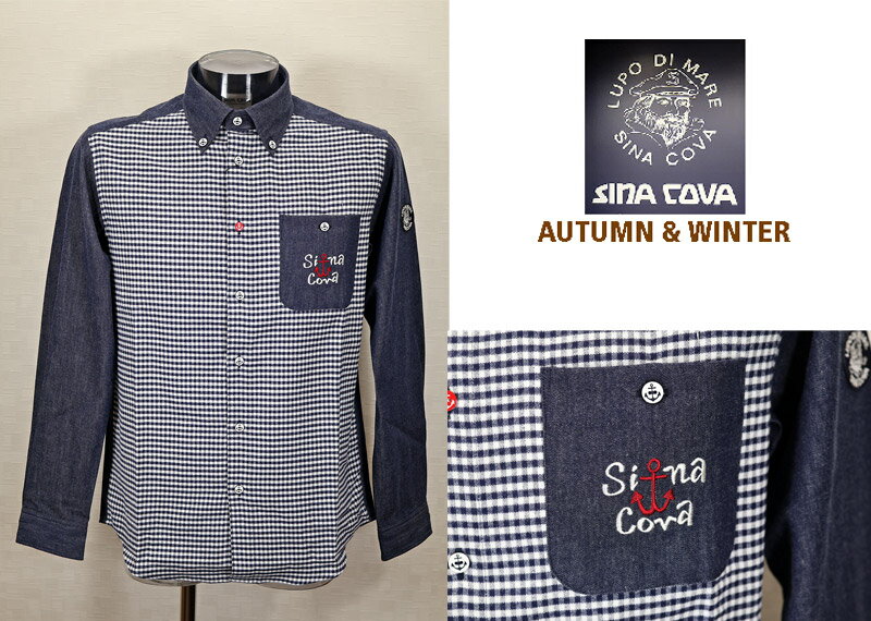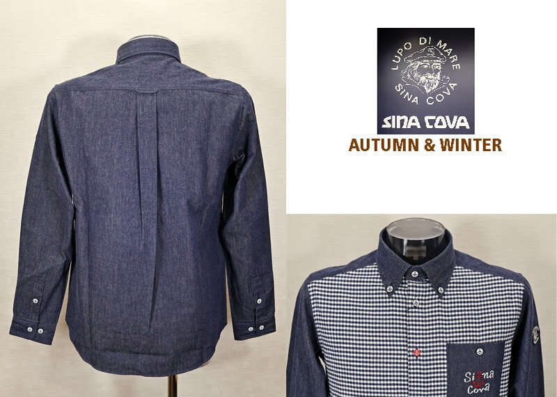 ★シナコバ【*001*】< 30%OFF>秋冬長袖ボタンダウンシャツ<Mサイズ・Lサイズ>インデゴ・ギンガム-eb155・eb156
