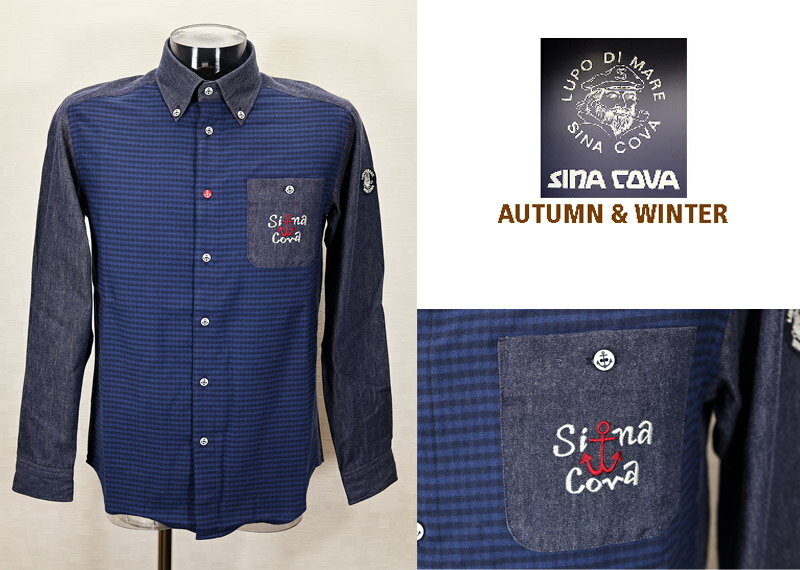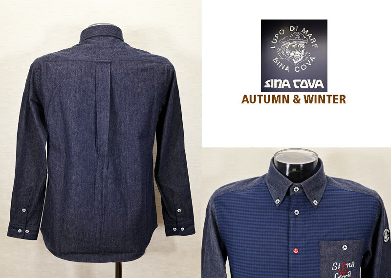 ★シナコバ【*001*】< 30%OFF>秋冬長袖ボタンダウンシャツ<Mサイズ・Lサイズ・LLサイズ>インデゴ・ギンガム-eb157・eb158・eb159
