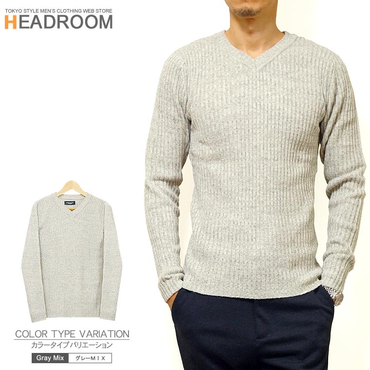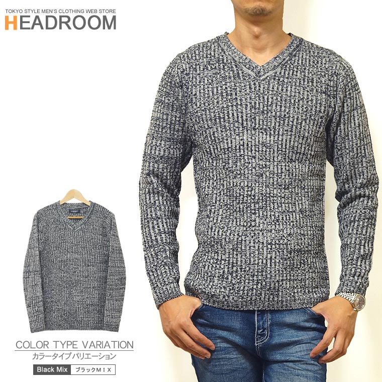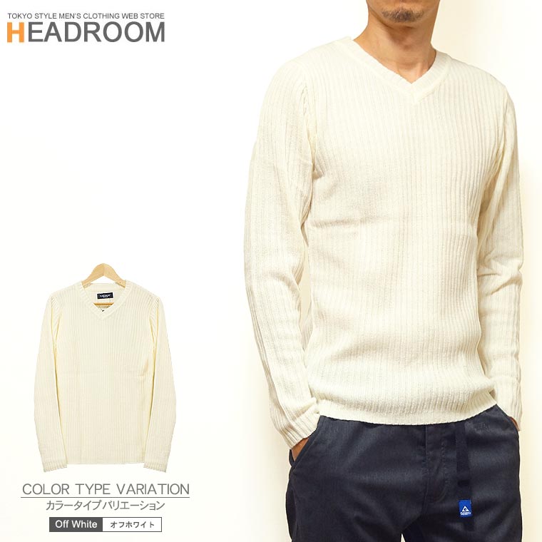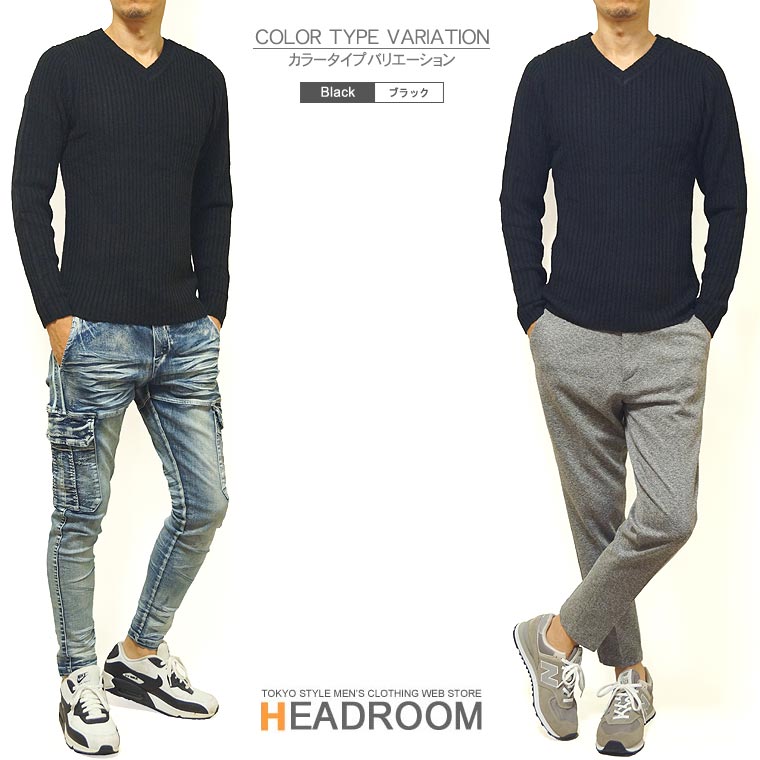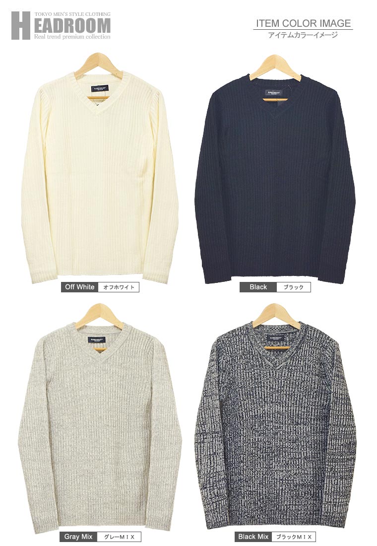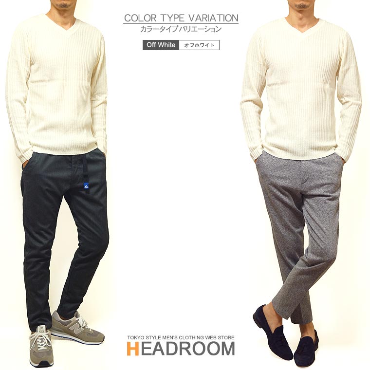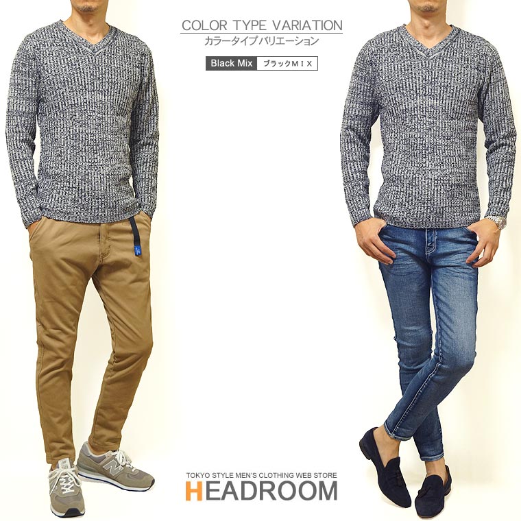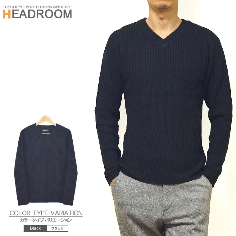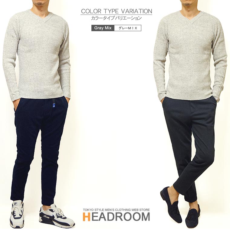 ニット メンズ Vネック リブ編み ローゲージ スリムシルエット セーター 長袖