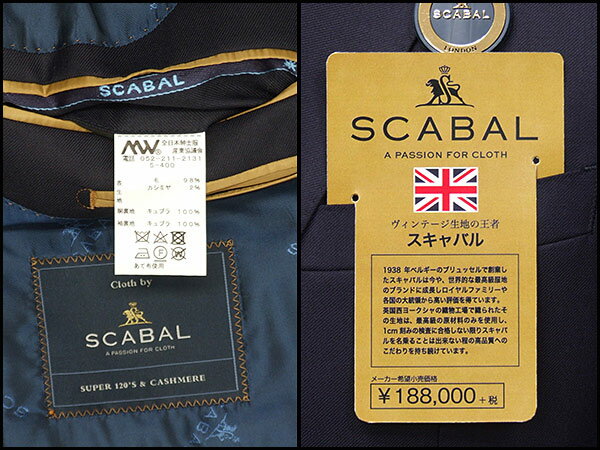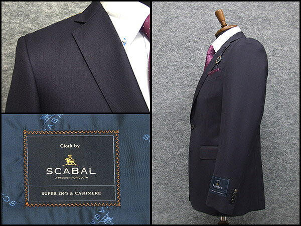 秋冬物 [Scabal] スキャバル Super120sオーダー生地使用 スタイリッシュ2釦シングルスーツ 紫紺系無地 日本製 [YA体][A体][AB体] ロゴ裏地 メンズスーツ scb11