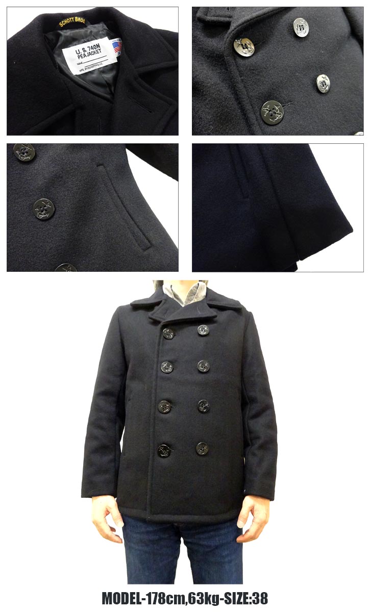 Schott 753US PEA COAT 24oz ショット スリムフィット ピーコート 7118 782-3954022 日本別注 24オンス ライトウエイト メルトンPコート アメリカ製