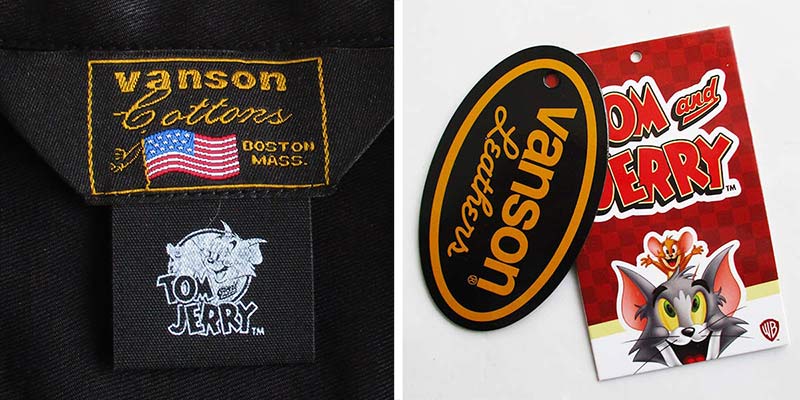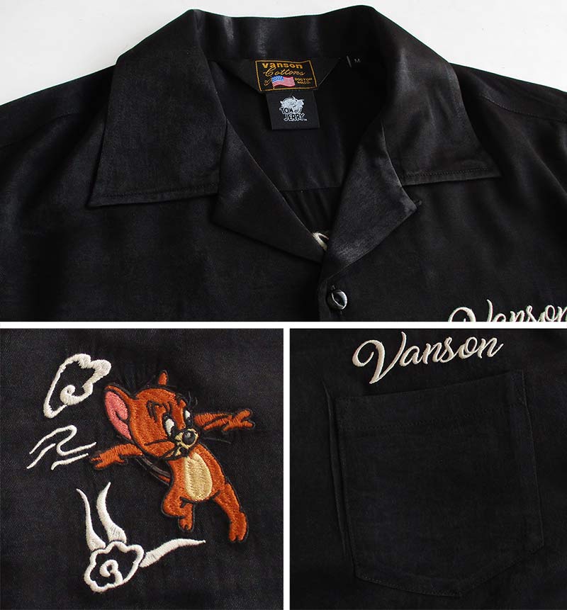VANSON バンソン トムとジェリー コラボ レーヨンボーリングシャツ カラー:BLACK メンズ レディース 刺繍 TOM & JERRY トム&ジェリー キャラクター スカシャツ 送料無料