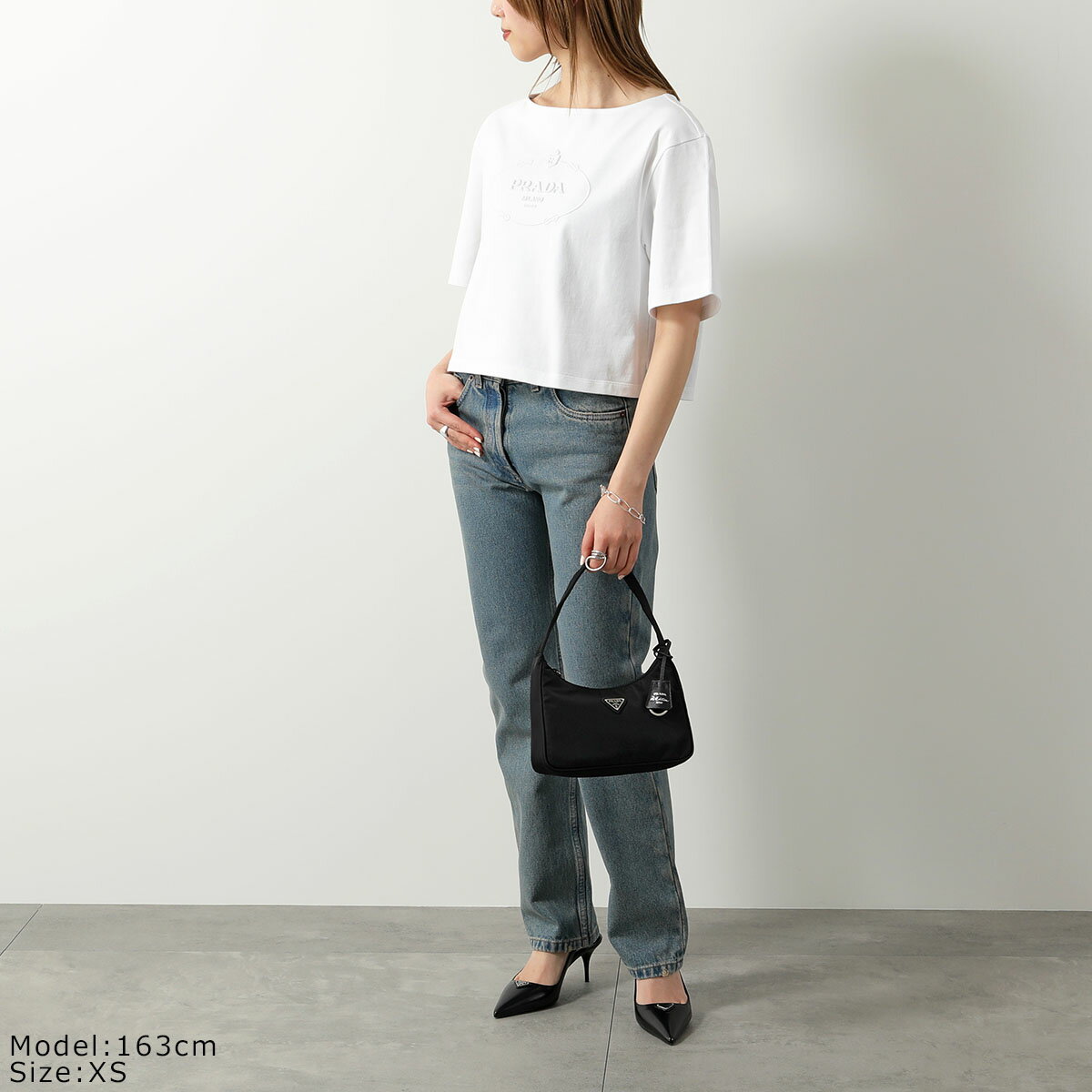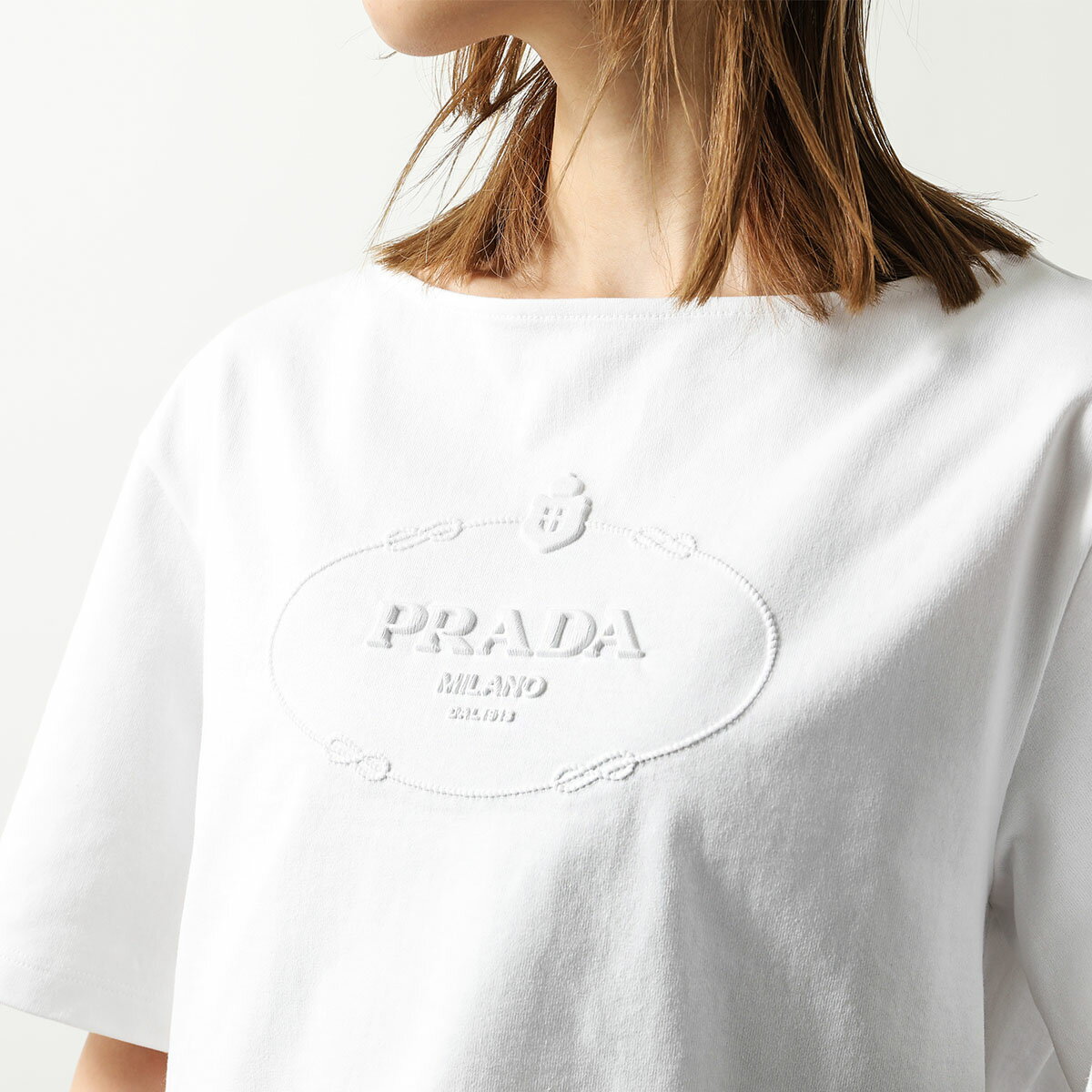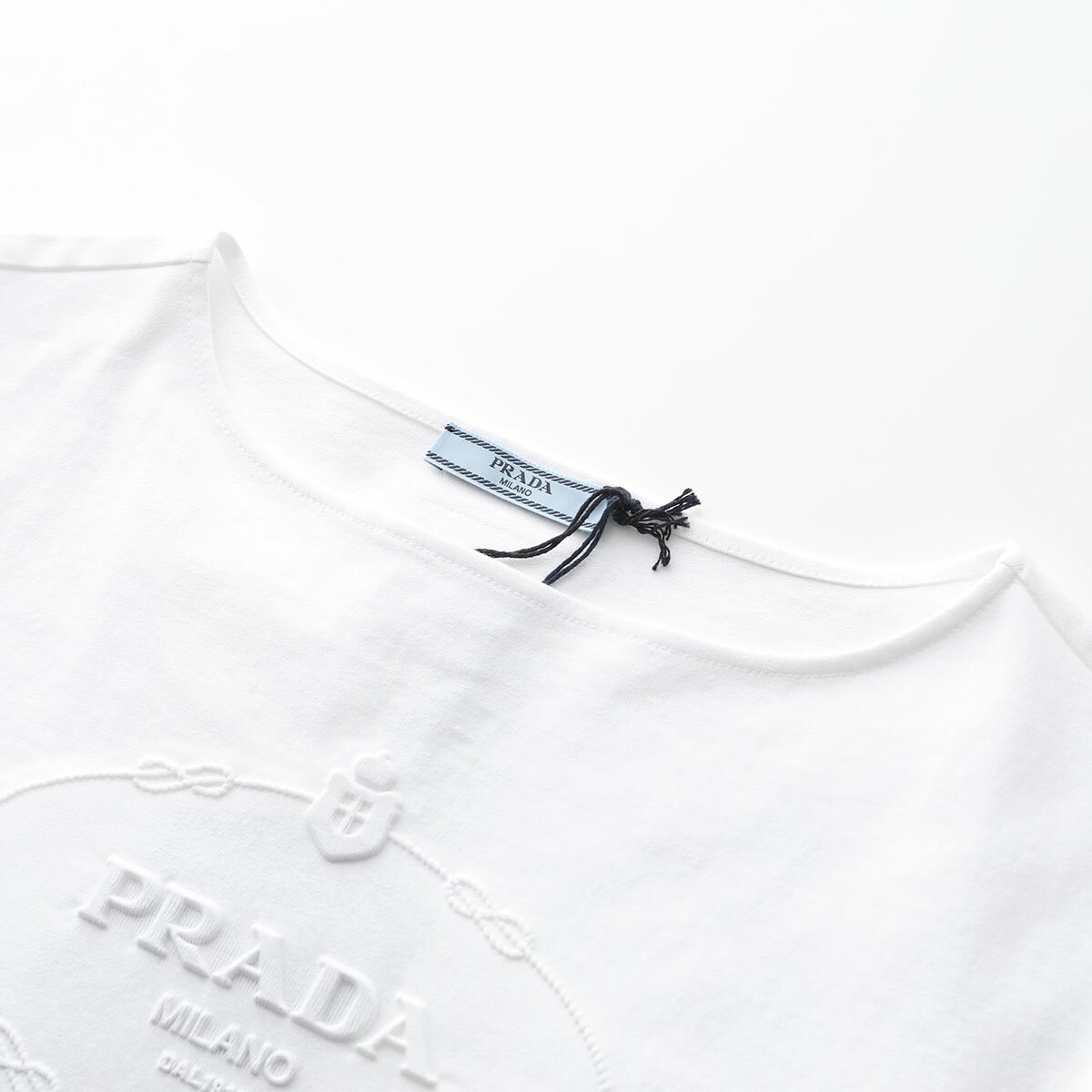 【4/29~5/1限定ポイント3倍】PRADA プラダ 半袖 Tシャツ 3546 B14LQ レディース カットソー ボートネック ロゴ ショート丈 コットン F0009/BIANCO【po_sannn】