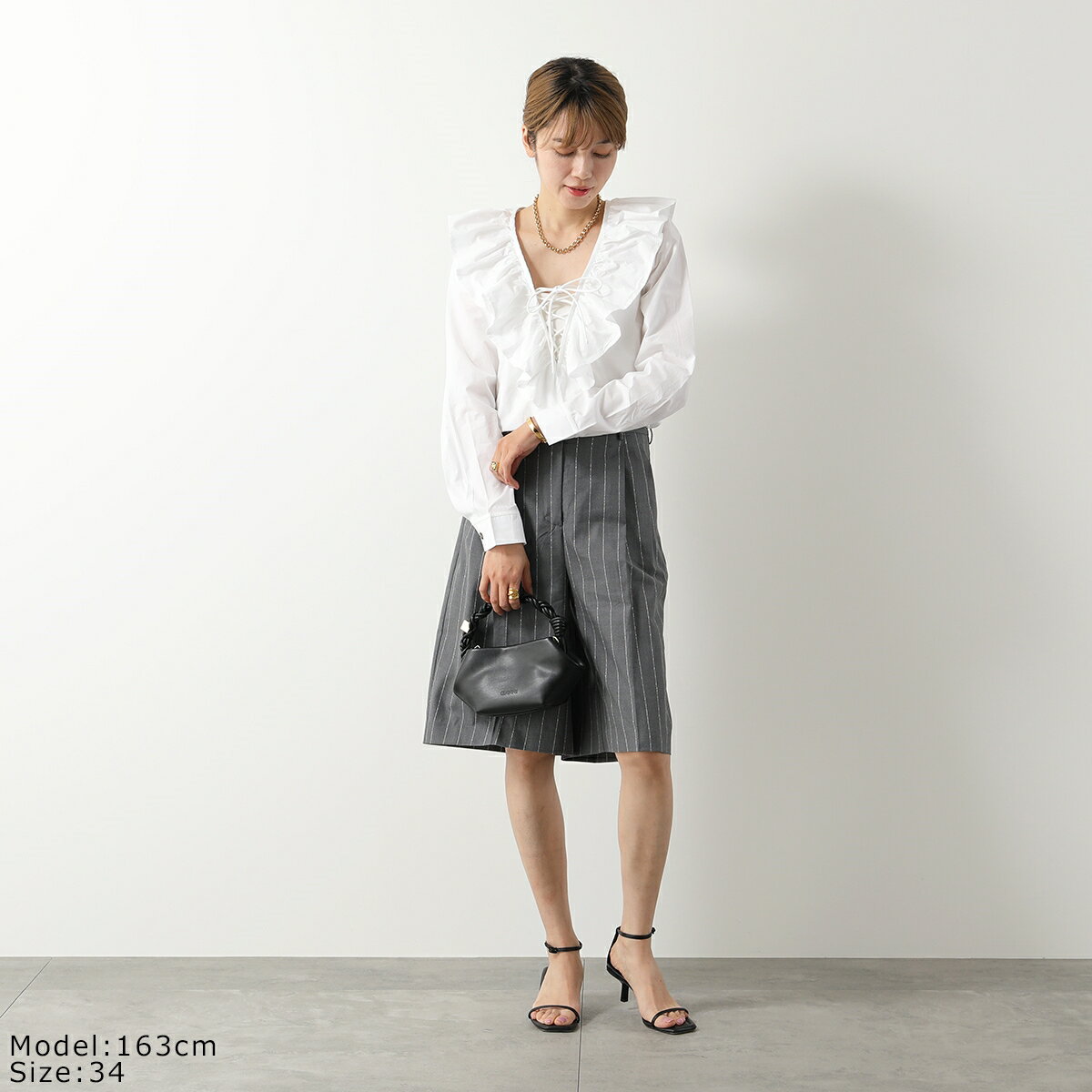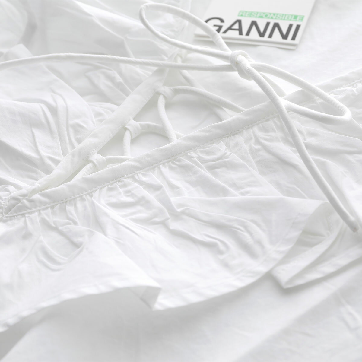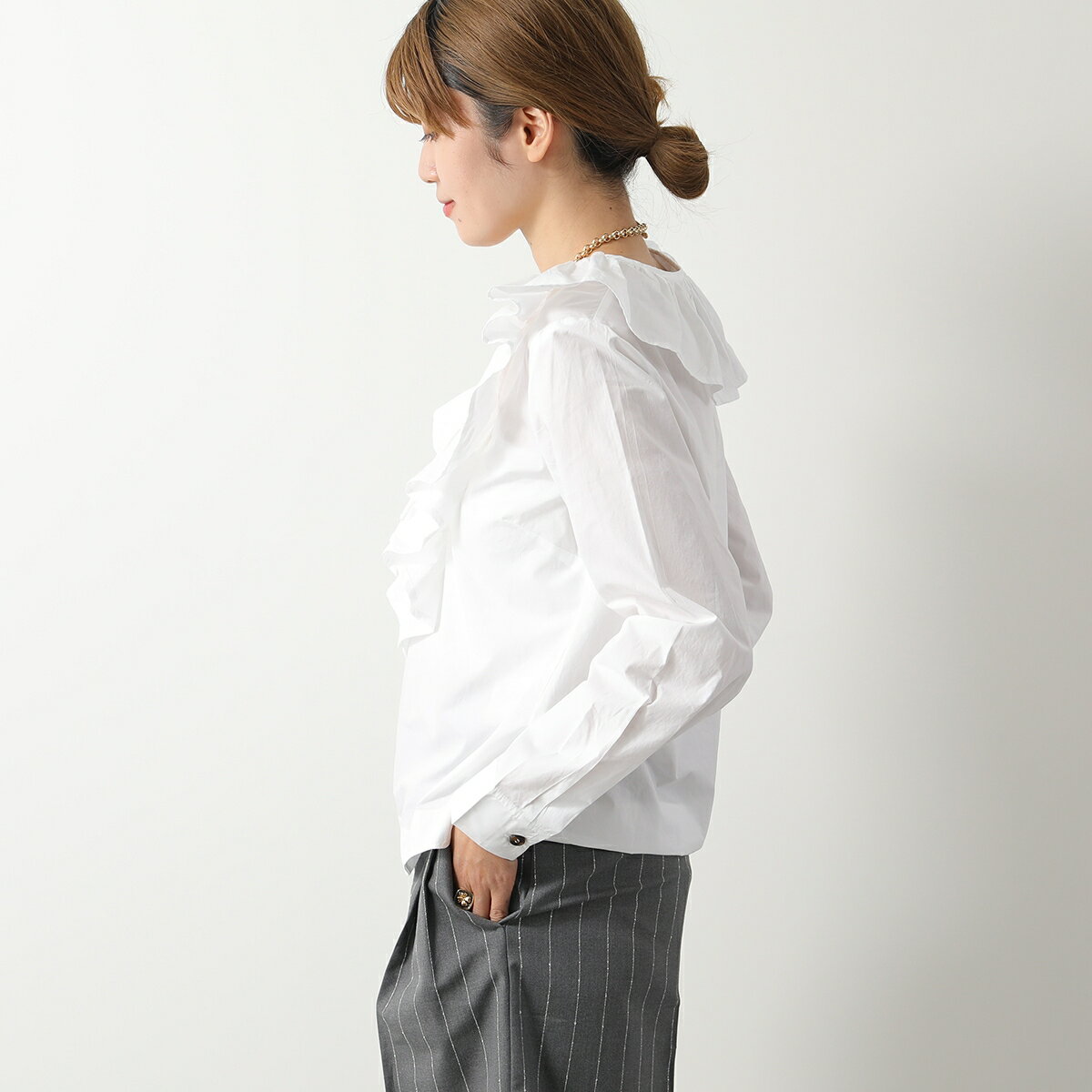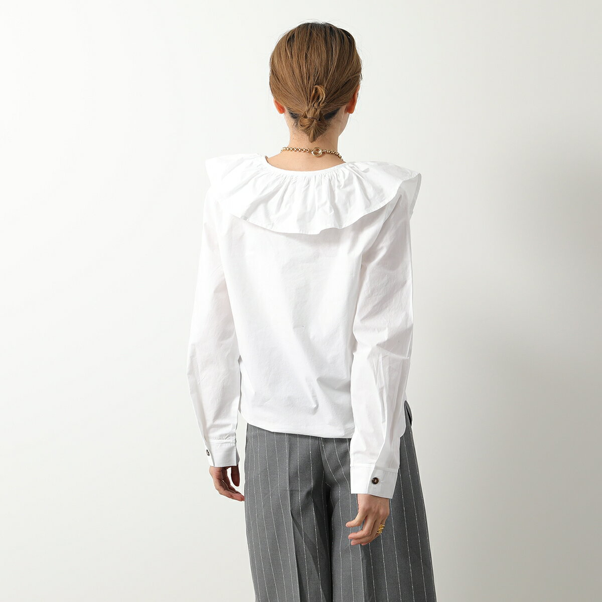 GANNI ガニー ブラウス Cotton Poplin Ruffle V-neck Blouse F8701 6479 レディース フリル Vネック 長袖 151/Bright-White【po_sannn】