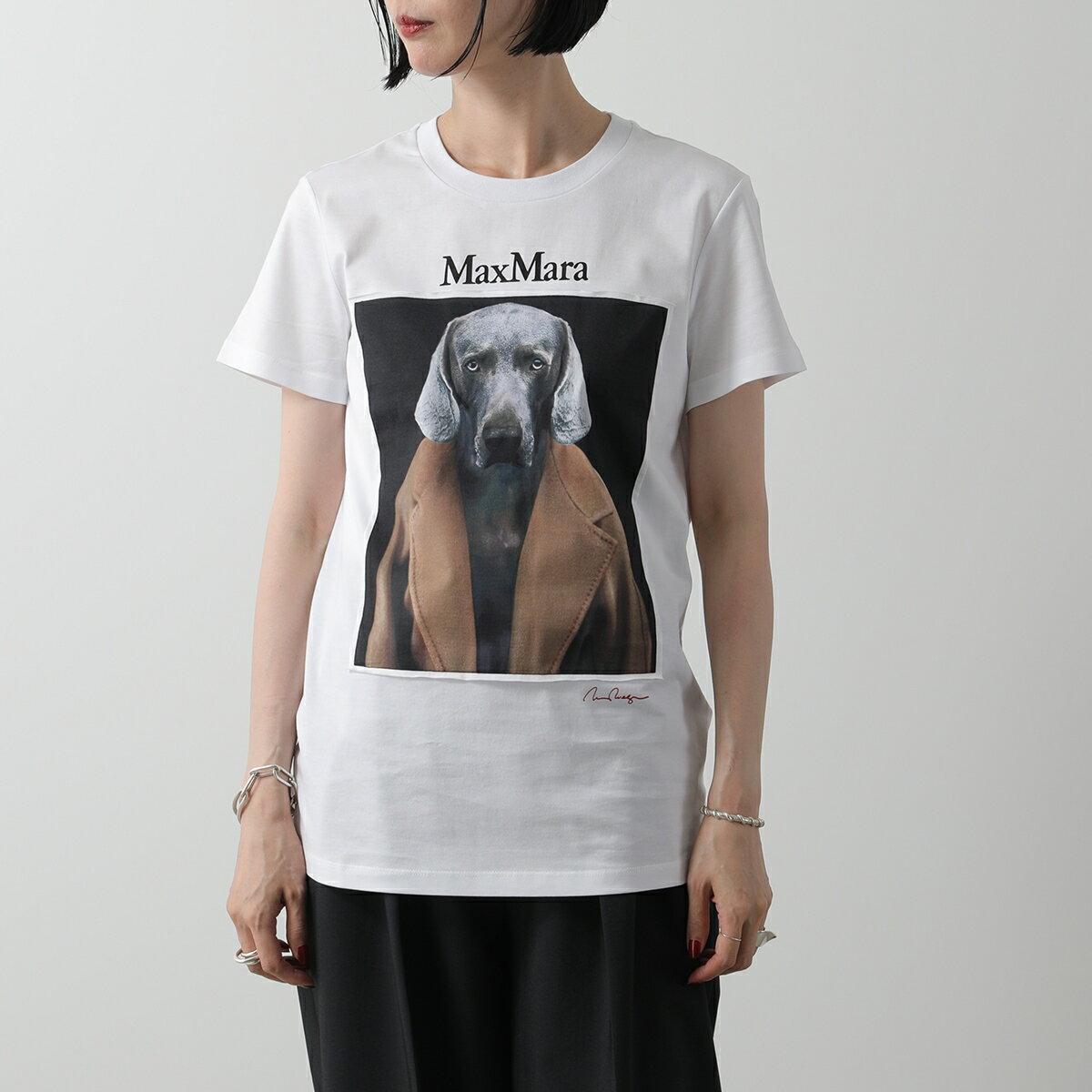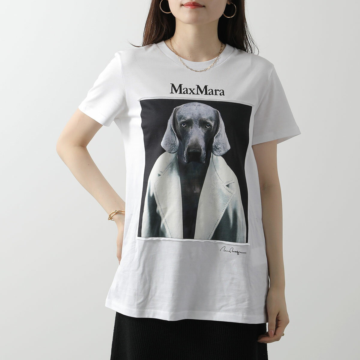 MAX MARA マックスマーラ 半袖 Tシャツ CIPRIA レディース カットソー コットン ドッグプリント 犬 ロゴ クルーネック 016/CAMMELLO
