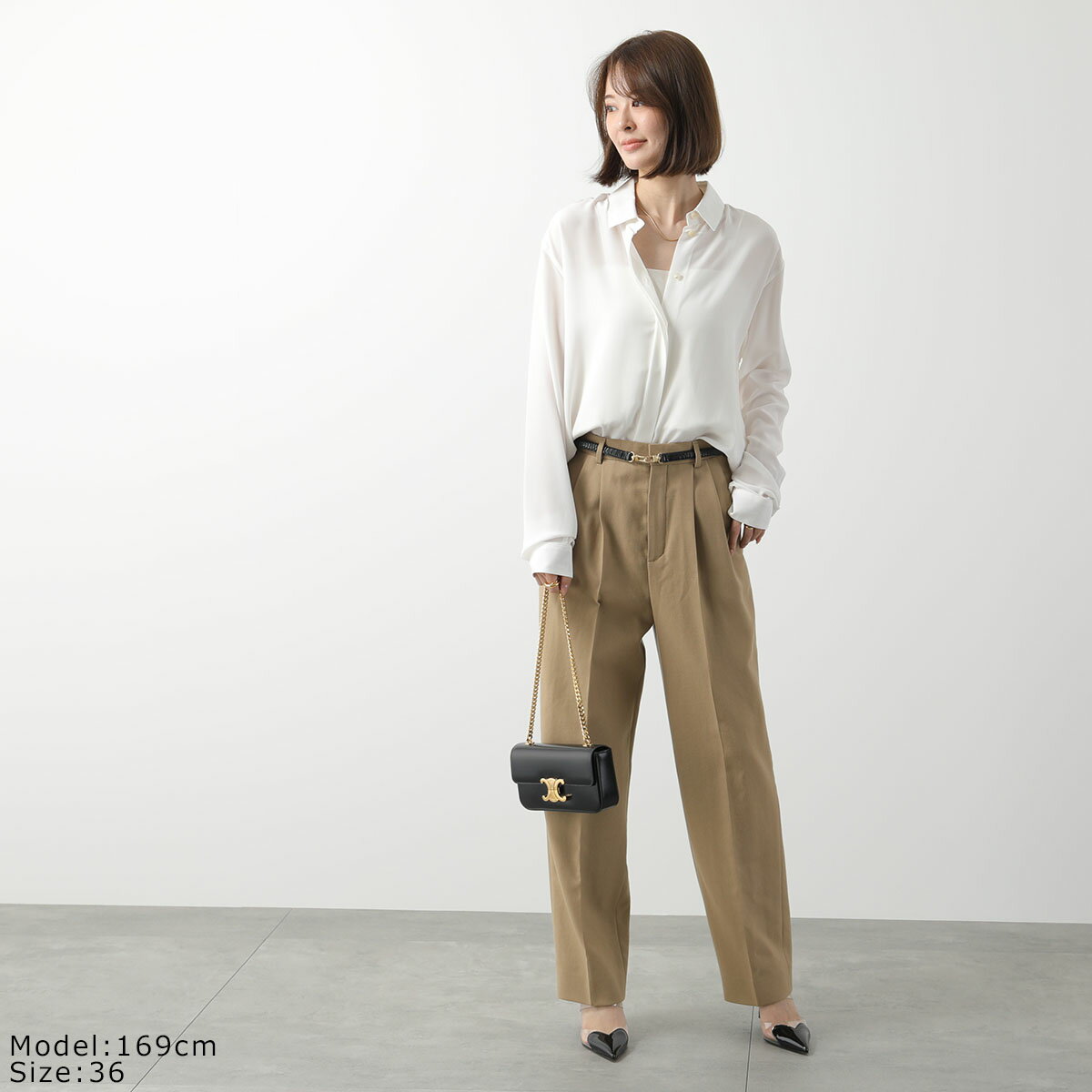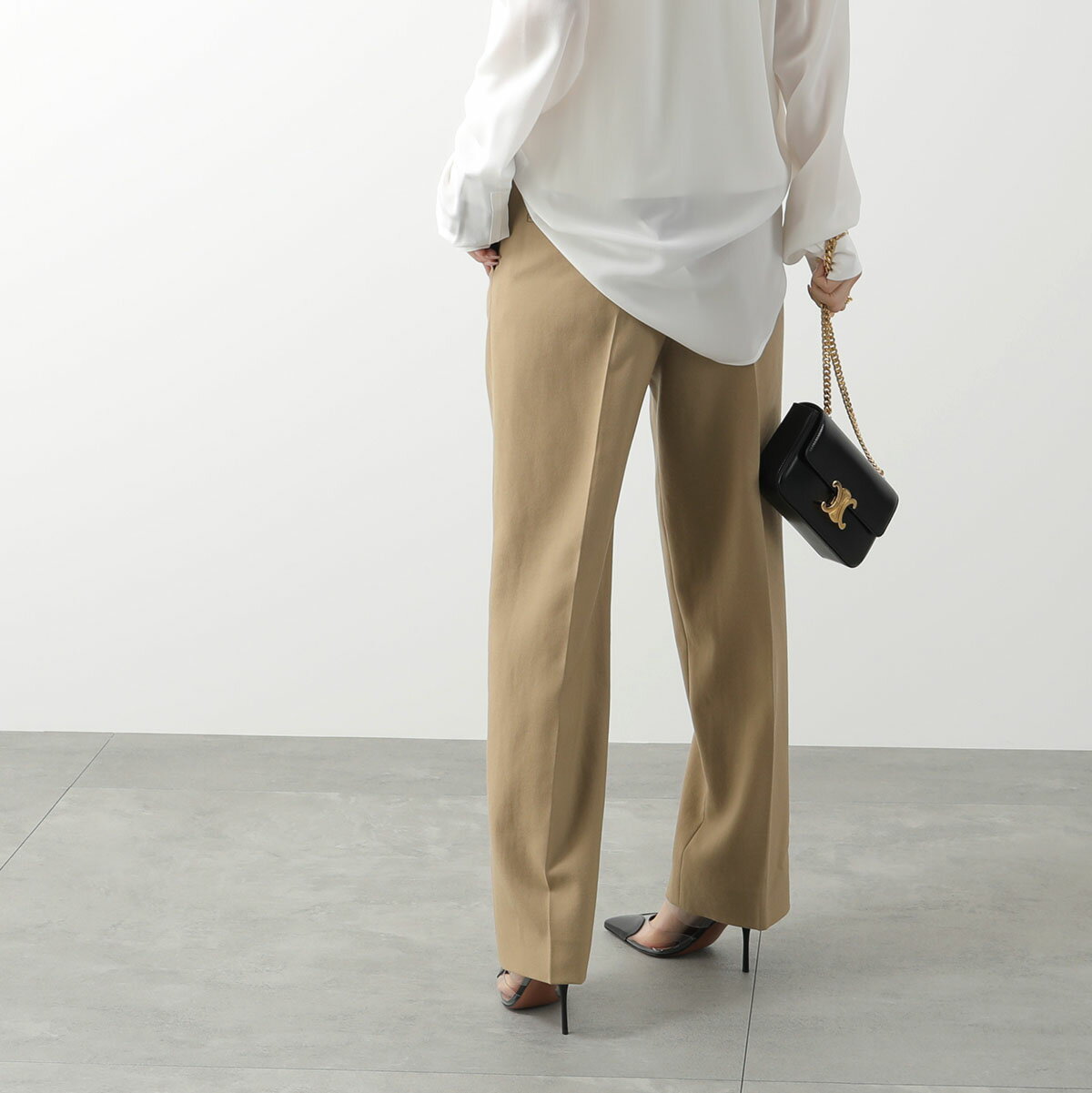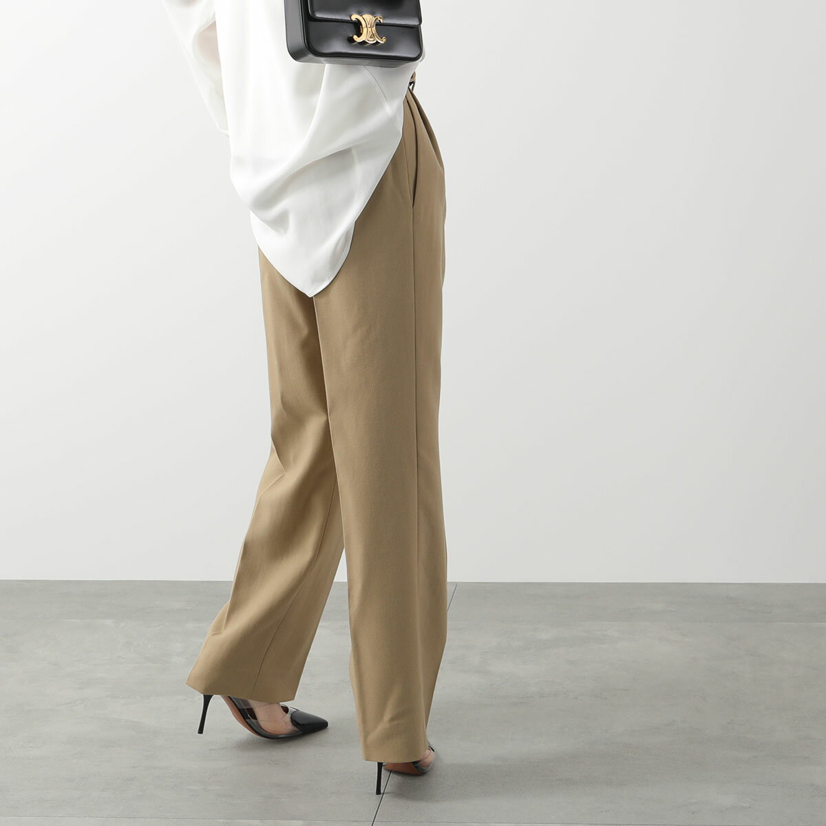SAINT LAURENT サンローラン チノパンツ 648142 Y7B73 レディース ワイド ウール ツータック センタープレス 2613 【po_fivee】 【dc_kikaku】
