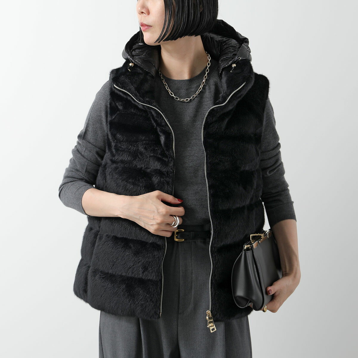 HERNO ヘルノ ファーベスト PI001937D 12630 レディース ダウンベスト エコファー フード付き ハイネック ジレ ジップアップ カラー4色【po_fivee】 【dc_kikaku】