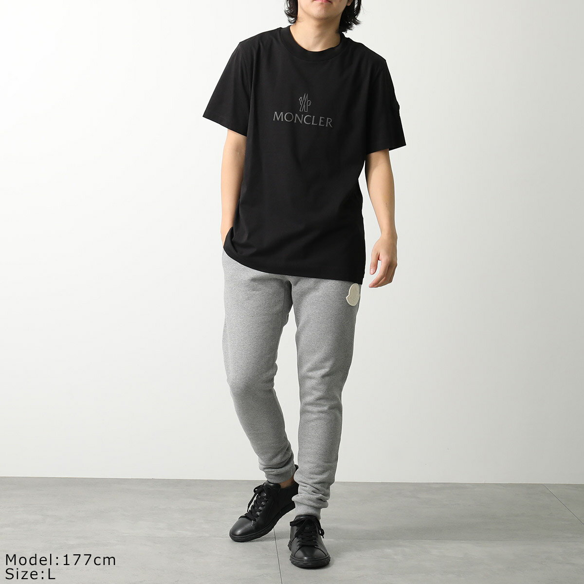 MONCLER Matt Black モンクレール マットブラック Tシャツ 8C00024 829H8 メンズ クルーネック 半袖 カットソー ロゴT ラバーパッチ コットン サイドメッシュ カラー2色