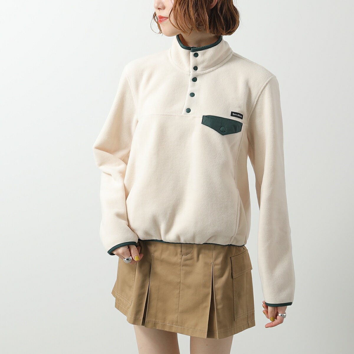 SPORTY&RICH スポーティアンドリッチ フリース プルオーバー QZAW23 レディース 長袖 ハイネック 胸ポケット ロゴ カラー3色【cp_ten】