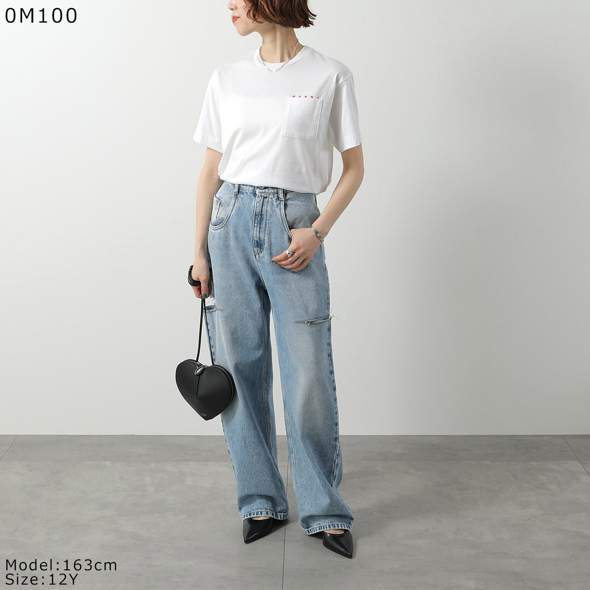 MARNI KIDS マルニ キッズ Tシャツ M01415 M00RF レディース ガールズ 半袖 カットソー 胸ポケット クルーネック ロゴT カラー2色