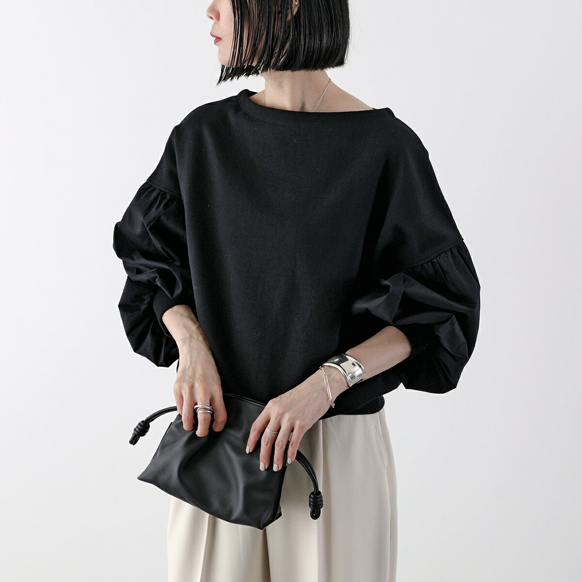 Munich ミューニック スウェットシャツ MN242U30 レディース コットン ボリュームスリーブ ギャザー トップス ボートネック カラー2色【ss_ten】