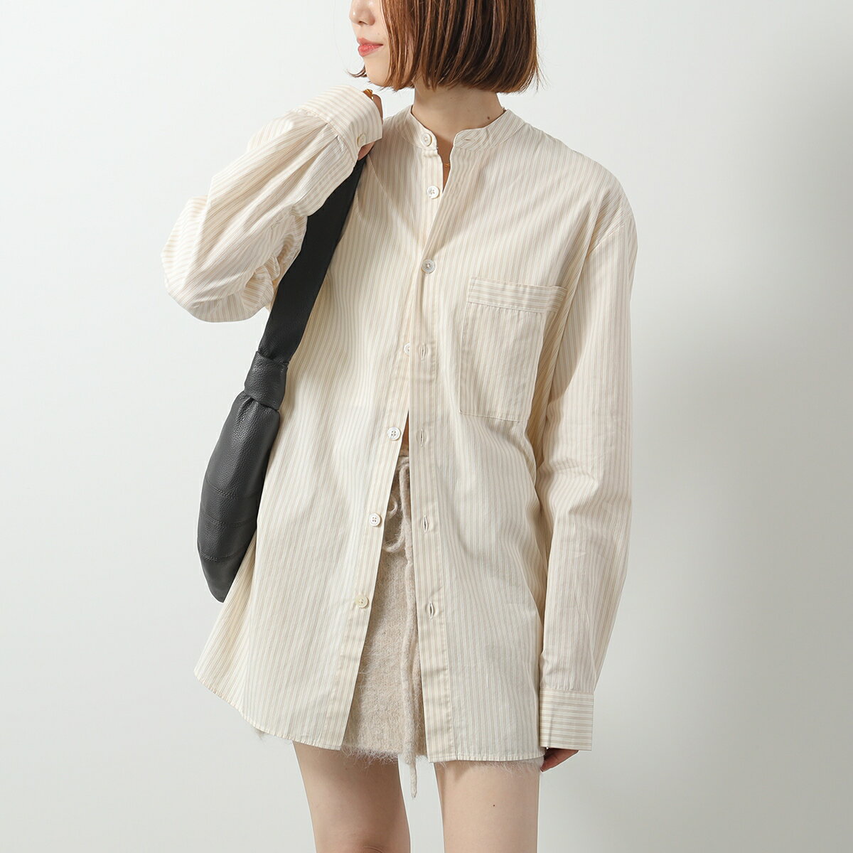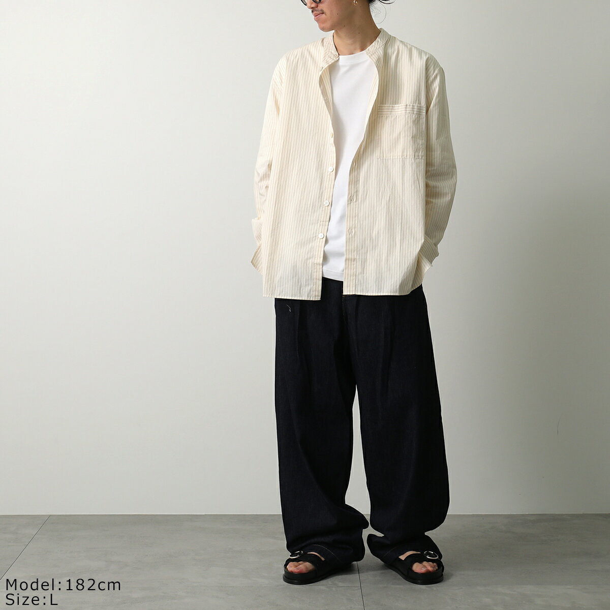 TEKLA × BIRKENSTOCK テクラ ビルケンシュトック コラボ シャツ SWT メンズ 長袖 コットン ノーカラー ストライプ 胸ポケット オーバーサイズ カラー2色