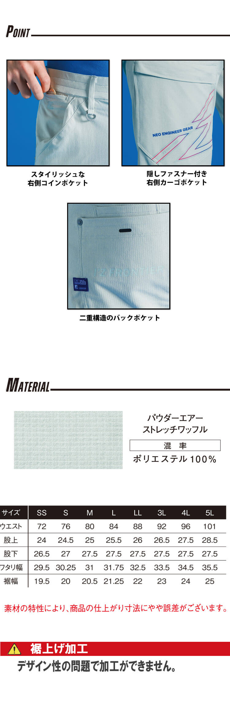 [4月下旬入荷先行予約]アイズフロンティア I'Z FRONTIER 作業服 春夏 パウダーエアーストレッチハーフパンツ 5334 2025年春夏新作 5330シリーズ