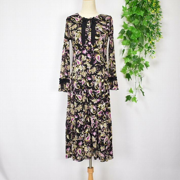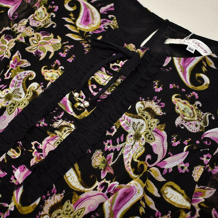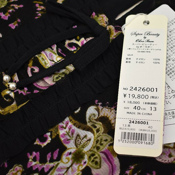 \マラソン期間中♪定価から40%OFF+10%OFFクーポン/スーパービューティー ワンピース パワーネット 長袖 ストレッチ ペイズリー フレアライン 2426001 レディース カジュアル リボン レース 【小】ワンピ ジェイシー 春/夏/秋 SuperBeauty ブラック/ブルー 40/42/44