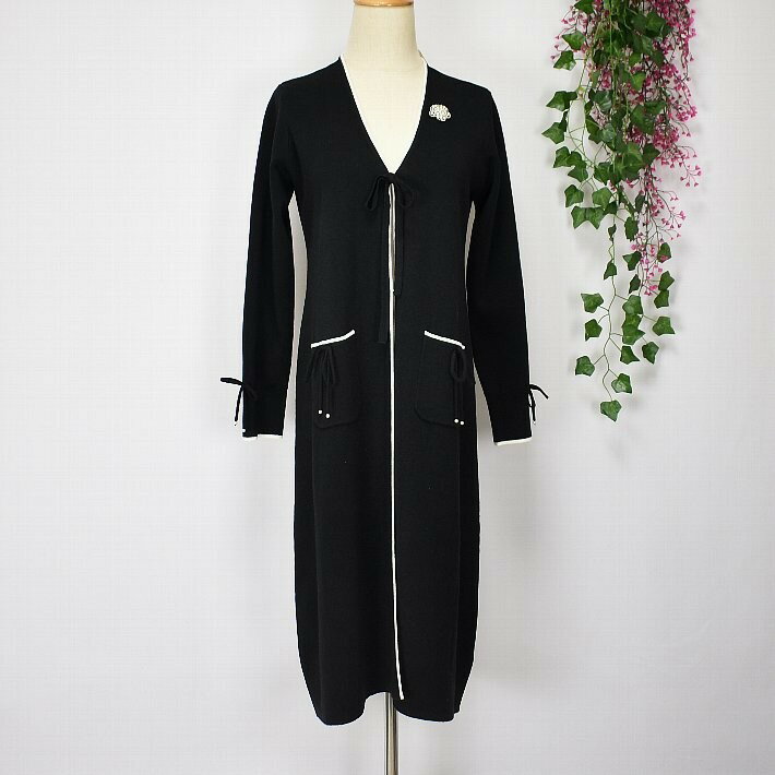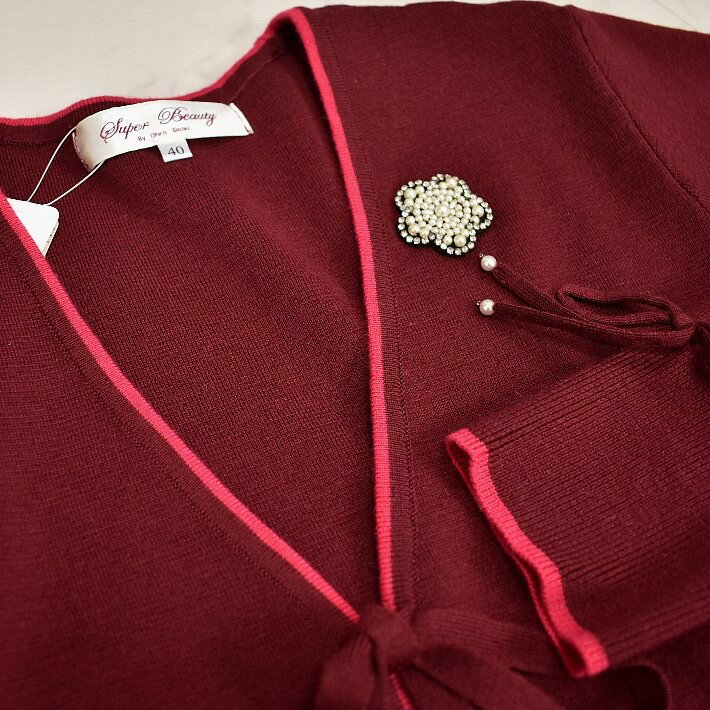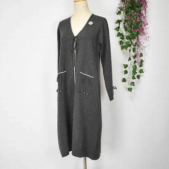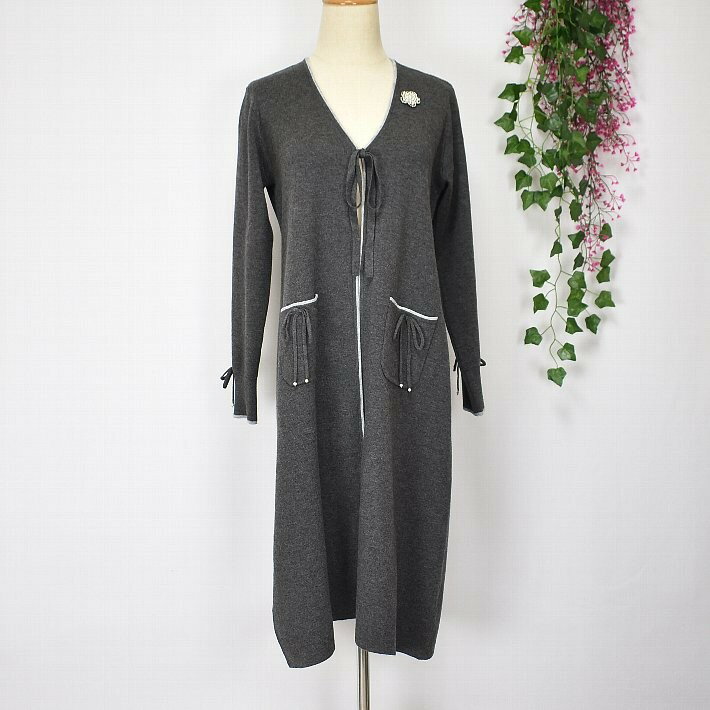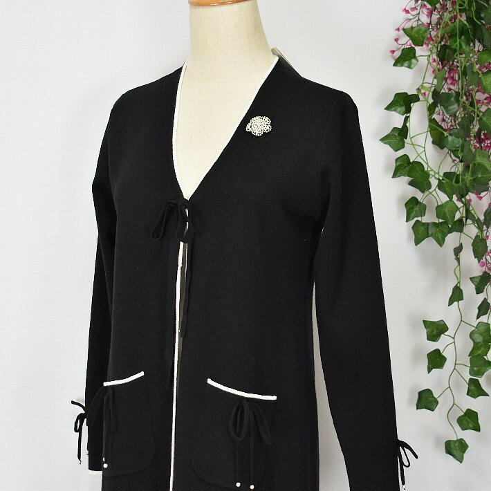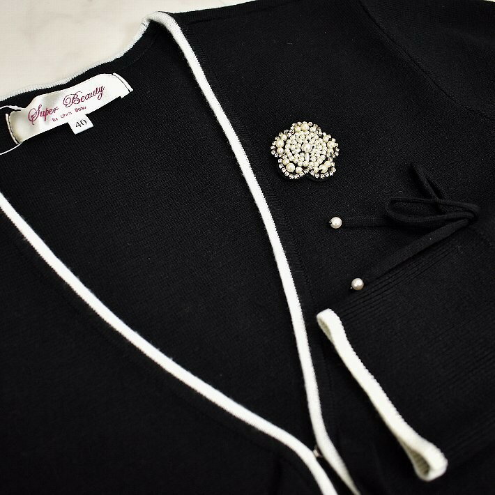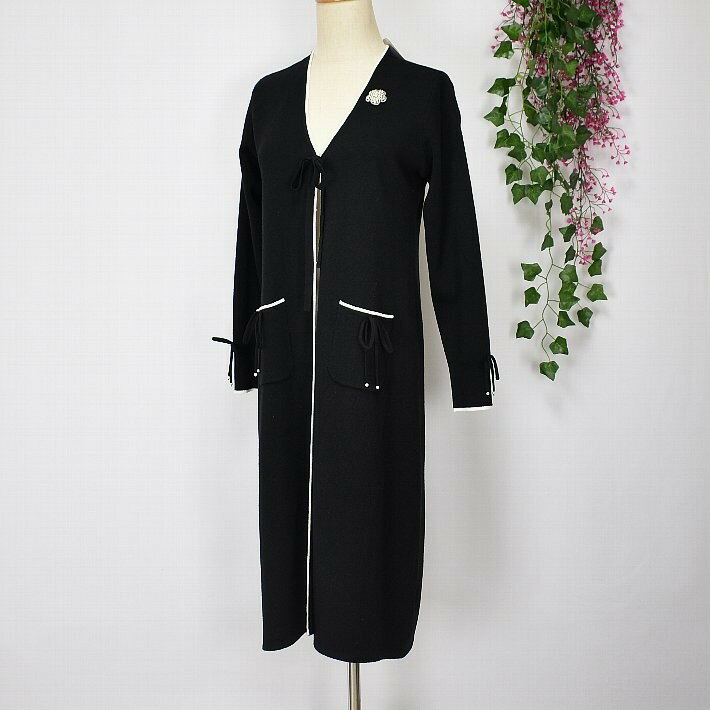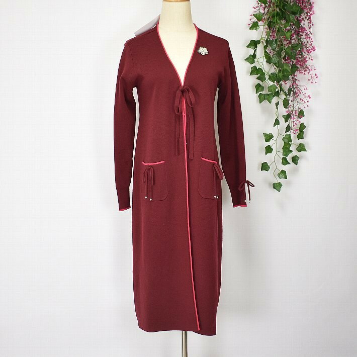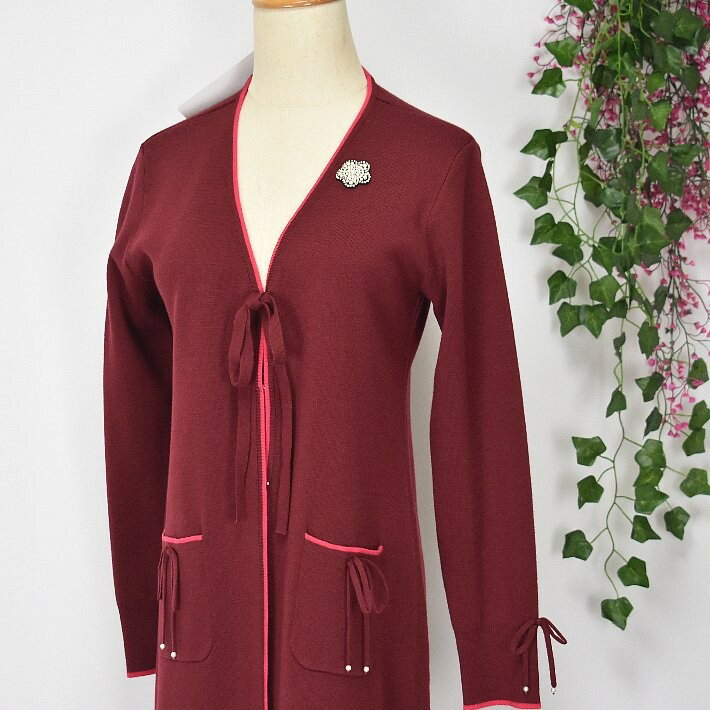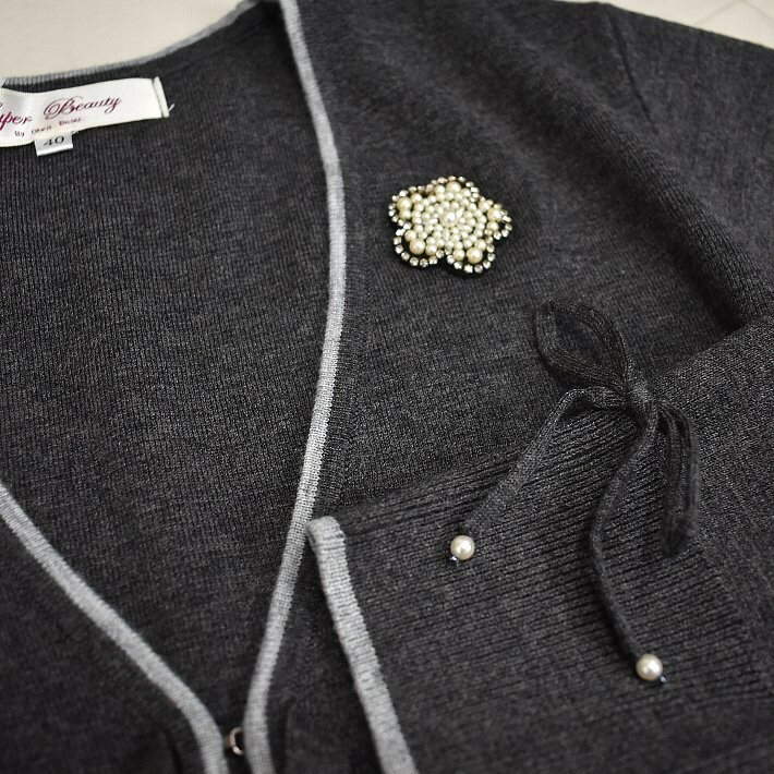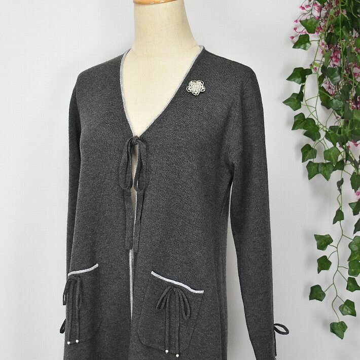 \定価から40%OFF+LINEお友達に特典あり/スーパービューティー ロングカーデ トッパー 2321049 長袖 ロングカーディガン Vネック ライン入り 【大】ビシュー ブローチ SuperBeauty イエベ/ブルベ グレー/ブラック/ワイン 高品質 デパートブランド