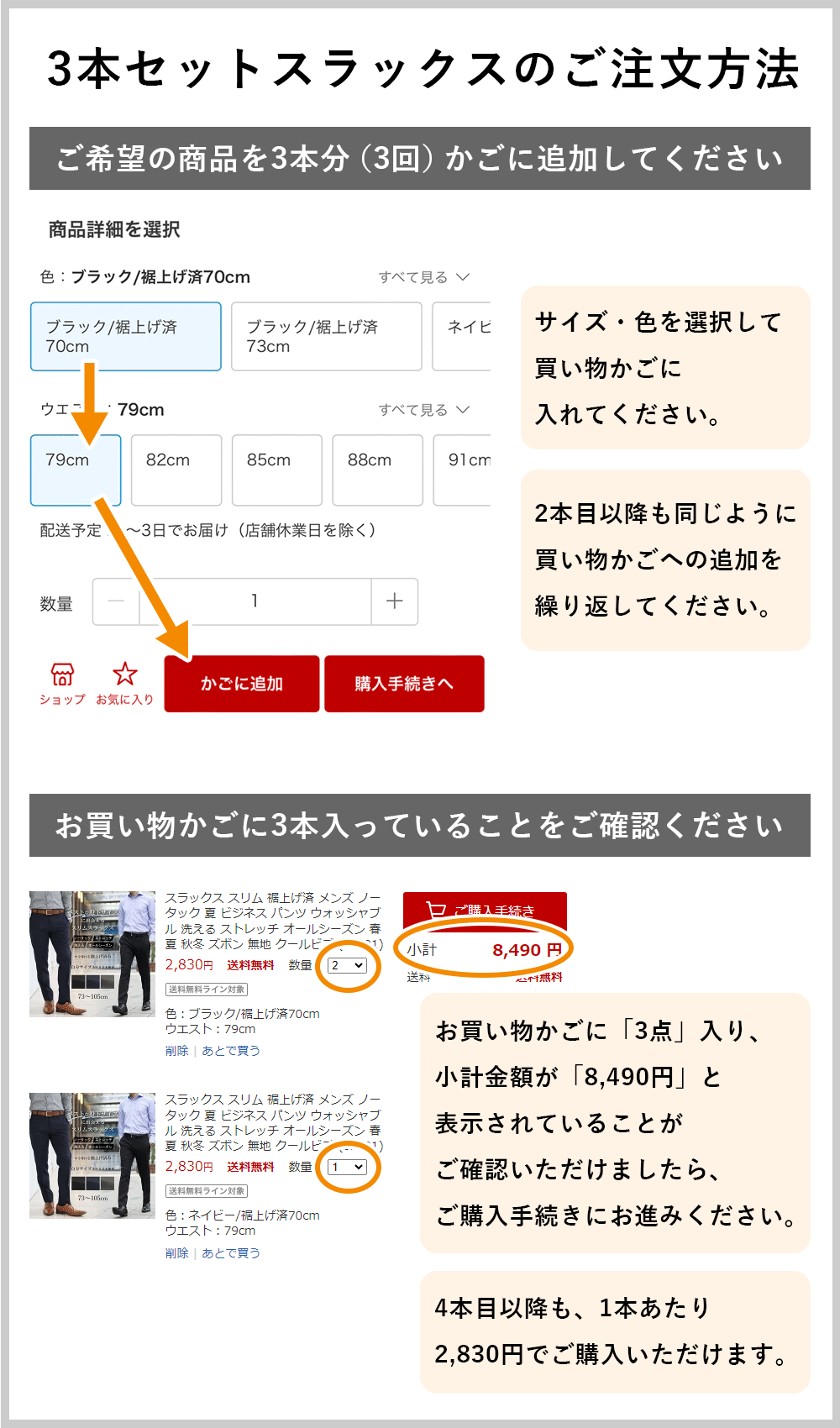 【選べる3本セット★8,490円】スラックス スリム 裾上げ済 メンズ ノータック 3本組 夏 ビジネス パンツ ウォッシャブル 洗える ストレッチ オールシーズン 春夏 秋冬 ズボン 無地 クールビズ