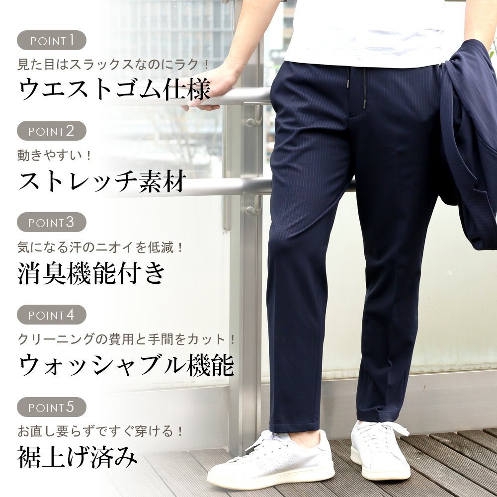 【マラソン限定★2,600円⇒1,900円】訳あり 処分価格【セットアップ対応】スラックス 裾上げ済み ノータック メンズ パンツ ストレッチ ジャージー素材 ウエストゴム 春夏 洗える 洗濯可能 ビジネス ビジカジ カジュアル テレワーク 在宅勤務 クールビズ ※パンツ単品