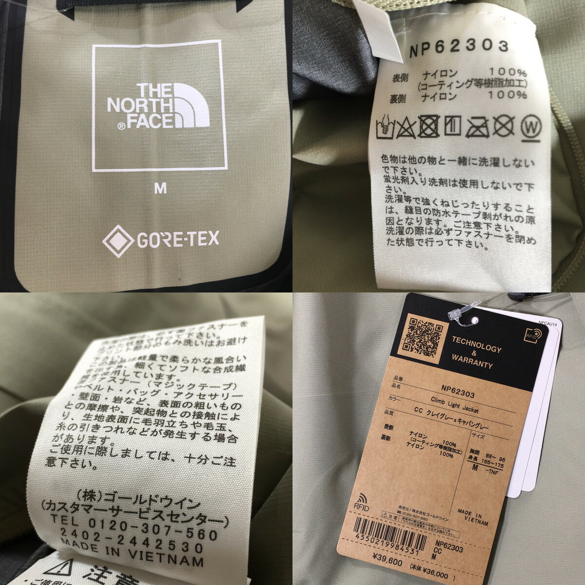 未使用品 THE NORTH FACE ザ・ノース・フェイス クライムライトジャケット Climb Light Jacket NP62303 CC グレー M 【A1】