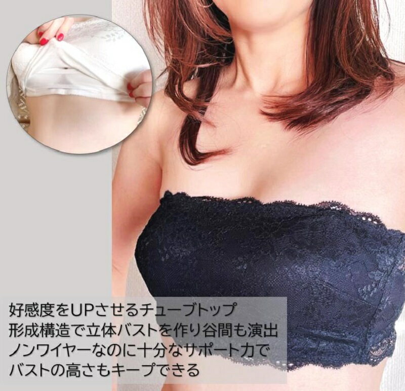 更にクーポン割引!新製品LLサイズも入荷!ずれない!チューブトップブラジャーカップ付き脇高サイドボーン脇肉スッキリ ズレにくい! 【モールドカップ付大きいサイズ総レース機能付 チューブブラ S〜LLサイズダンスオフショルダーパーティーブライダルに】477*