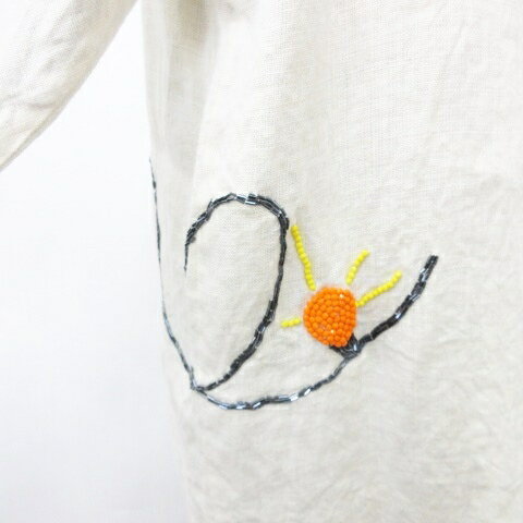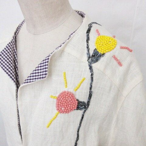 【中古】未使用品 アッシュペーフランス H.P.FRANCE デドゥエ D-due ジャケット 長袖 刺繍 ビーズ 無地 チェック リネン 生成り 紫 ホワイト パープル 38 レディース 【ベクトル 古着】 250610