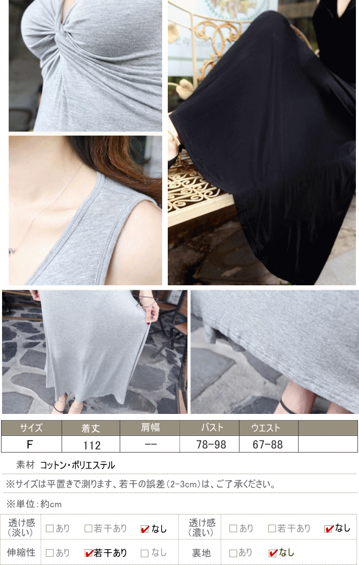 マキシワンピース リゾートワンピース 夏 レディース ロングワンピース 夏 ロングワンピース ノースリーブ キャミワンピース 夏 レディース カットソーワンピース マキシ丈ワンピース ロングワンピース Vネック 無地 Aライン 胸元ツイスト コットン 春夏 メール便送料無料