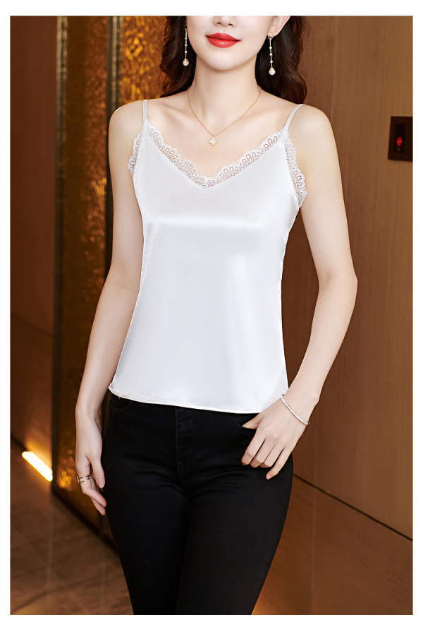 クーポンで8%OFF!キャミソール レース インナー レディース 無地 光沢感 セクシー ツヤ感 トップス Vネック ゆったり タンクトップ シルクサテン風 フェイクシルク シルクタッチ セクシー 総レース レイヤード 重ね着 フェミニン 袖なし おうちコーデ (アパレル)