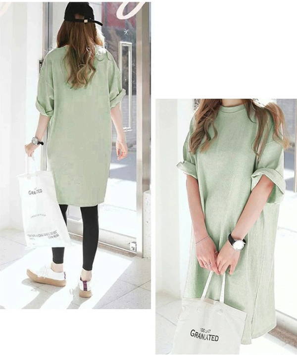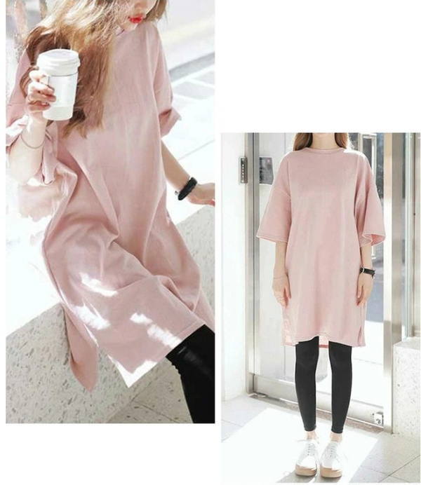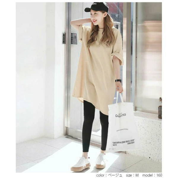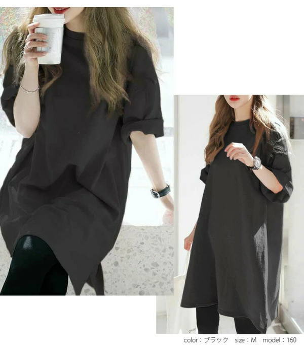 【クーポン利用で半額】チュニック tシャツ レディース トップス カットソー大きいサイズ チュニックワンピース 半袖 ロンt オーバーサイズ ビッグ Tシャツ ロング丈 七分袖 スリット シンプル ゆったり 体型カバー ドロップショルダー 韓国ファッション(アパレル)