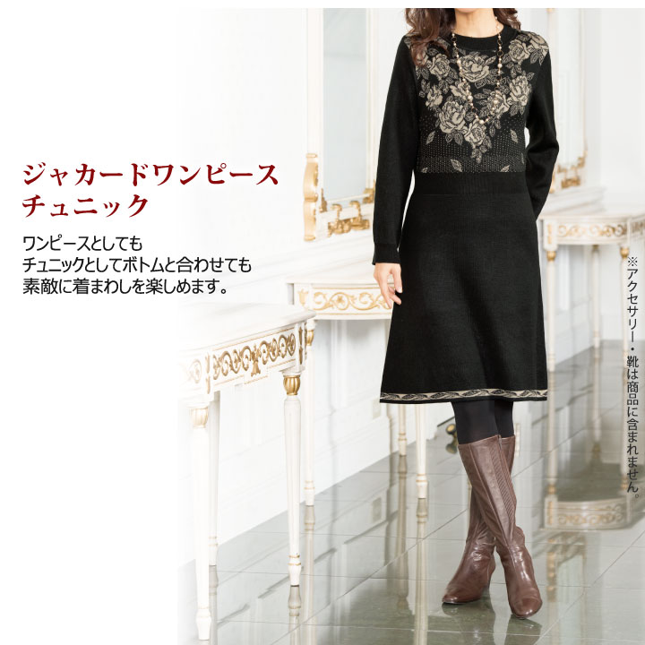 〇2週間限定セール!1,580円【レディースファッション】【チュニック】【ワンピース】《L・LL・3Lサイズ》ジャカードワンピースチュニック▼婦人服 ミセス クリスマス