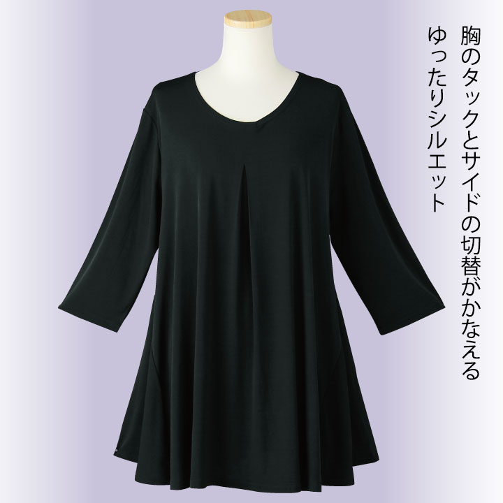 ストレスゼロのゆったりドレープTシャツ 黒 ターコイズ KN-234-3565-91261レディースファッション レディース ファッション トップス ロング丈 婦人服 女性 ゆったり ドレープ 体型カバー 安い ブラック レッスン ヨガ 運動 体操 ミセス