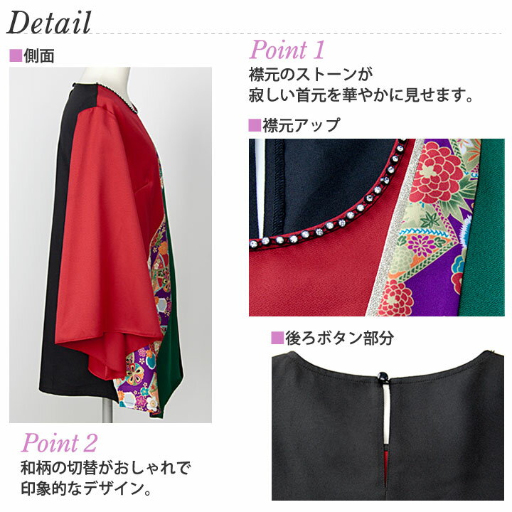 即納★ 和柄切替チュニック TSS1934-3367 カラオケ衣装 カラオケ ステージ衣装 発表会 フォーマル レディーストップス 黒 トップス