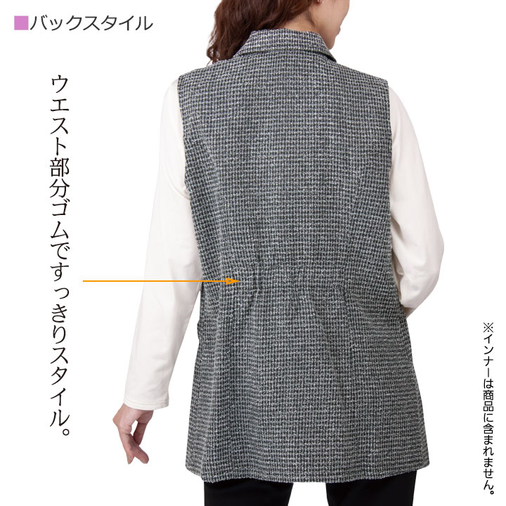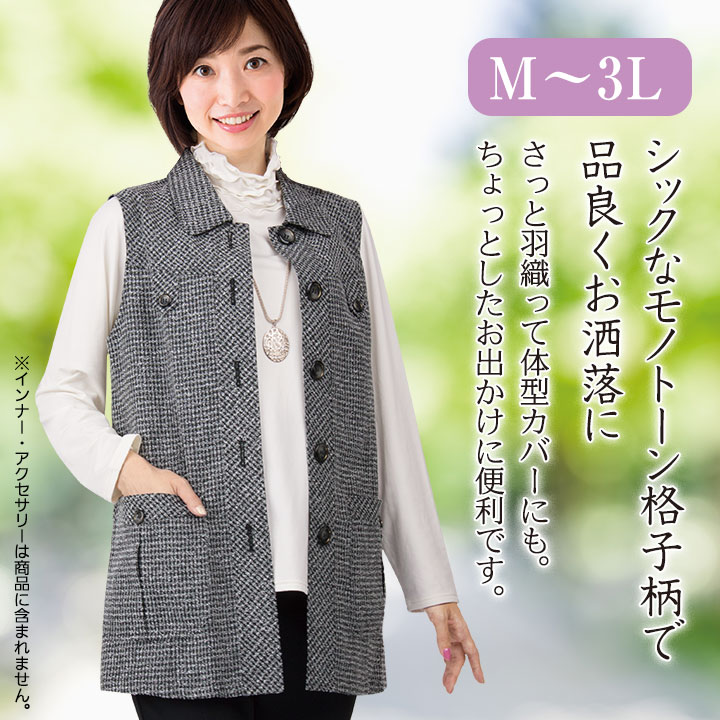 即納★【在庫限りセール】格子柄ツイード調ベスト [VE204-2-80182-91359] レディース ファッション ベスト レディースベスト ミセス トップス ツイード 秋冬 格子 格子柄