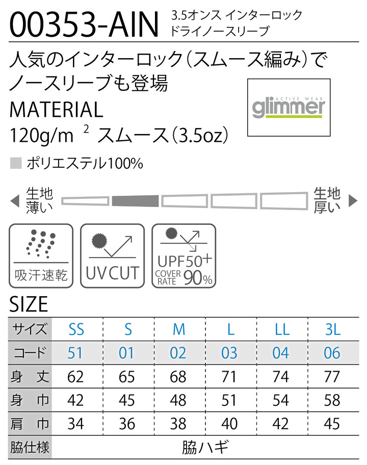 【5%クーポン★8月限定】タンクトップ メンズ ドライト ムスブランド 00353-ain グリマー SS-3L 5色 3.5オンス 吸汗 速乾 UVカット 伸縮性 ストレッチ レディース メンズ インターロックドライノースリーブ インナー 作業服