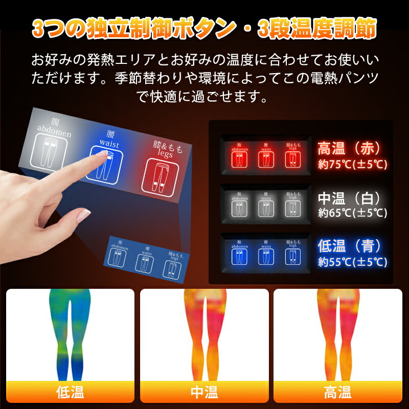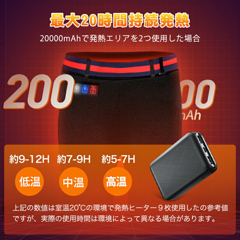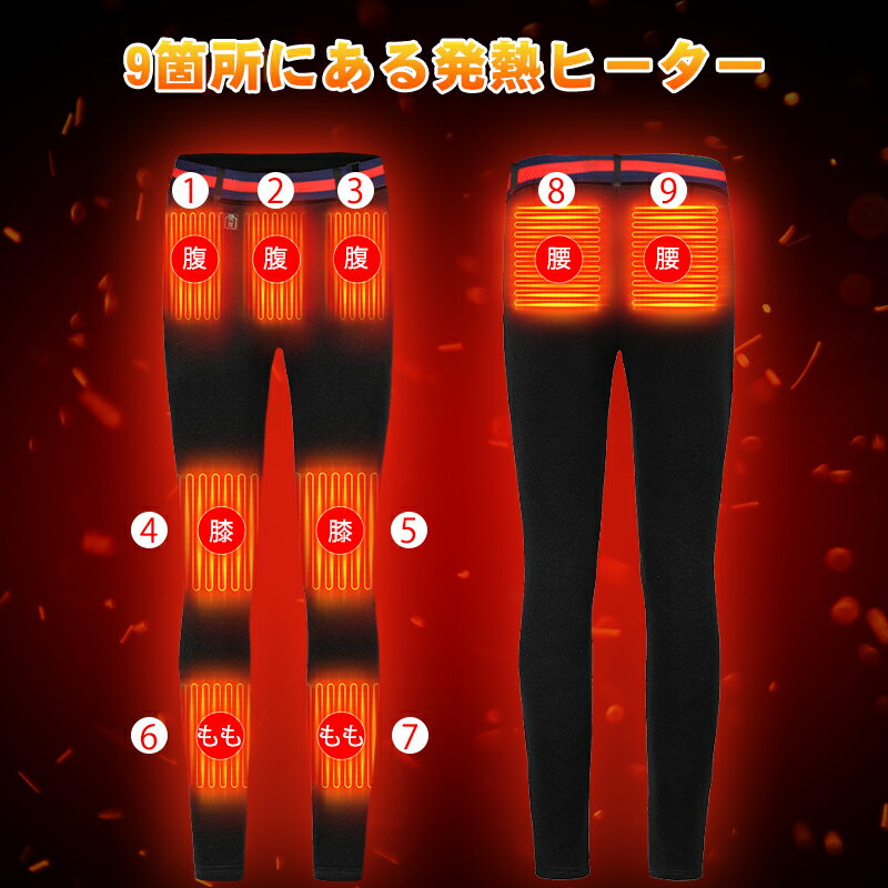 クーポンで5,980円~【2秒速暖&9エリア発熱】 電熱パンツ ヒーターパンツ 20000mAhバッテリー付 usb給電式 速暖 9箇所発熱 加熱パンツ 腰/腹/膝 3段温度 MXA約75℃ 冷え性対策 室内 室外 伸縮性高い バイクパンツ 電気パンツ M~XXL 男女兼用 室外作業 アウトドア 通勤 通学
