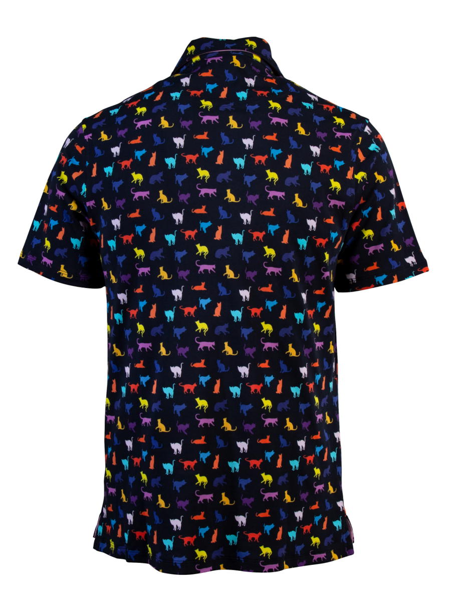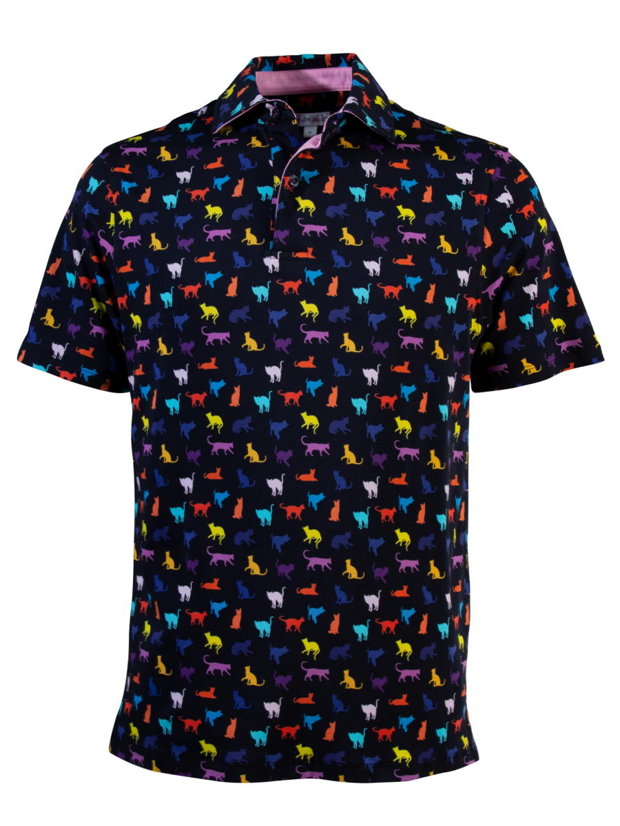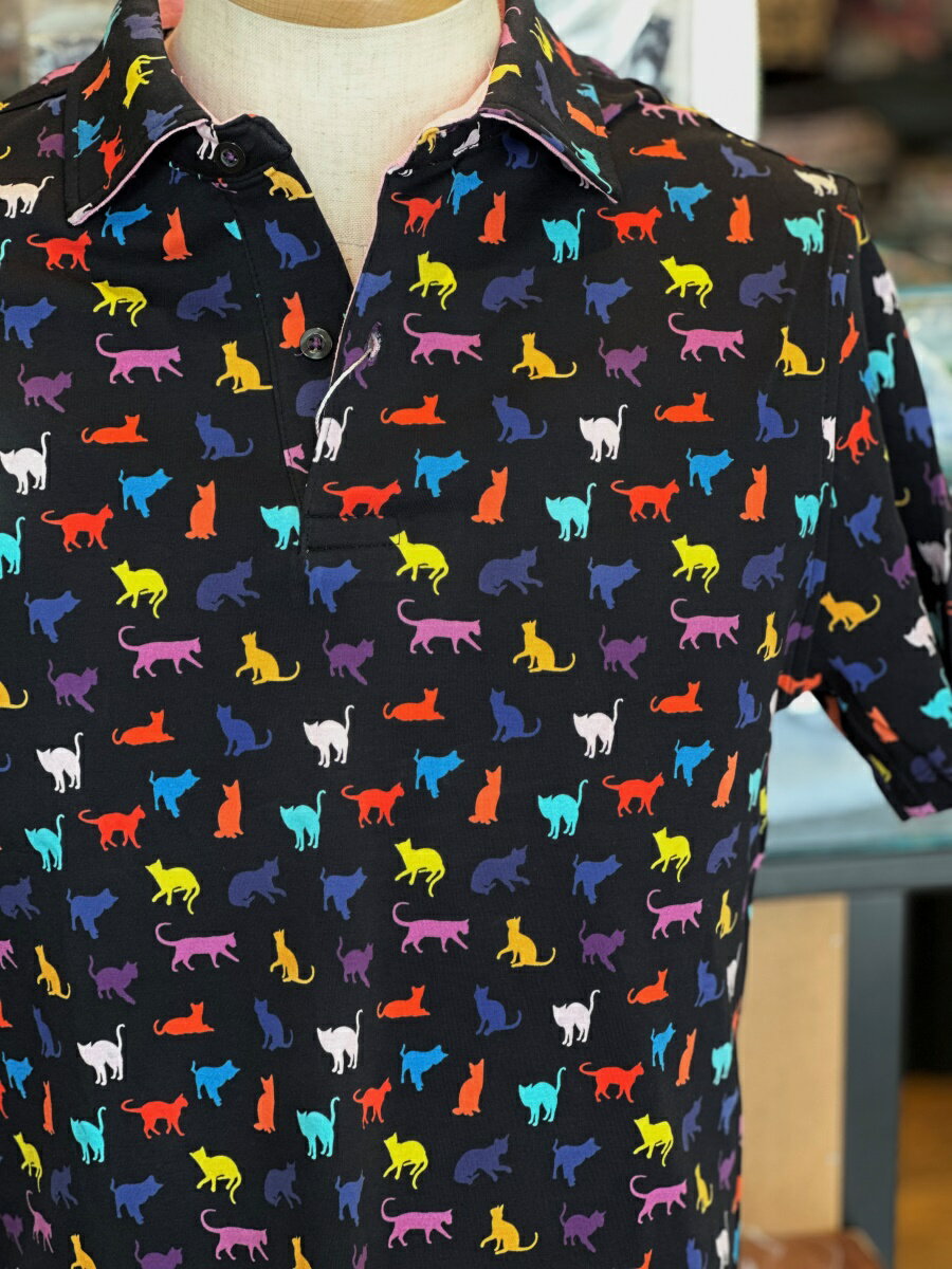 春 ポロシャツ メンズ 半袖 柄シャツ 猫 ネコ柄 プリント カラフル マルチカラー タウン ゴルフ ゴルフコンペ 賞品 スポーツ ギフト プレゼント 高級エジプト綿 男性 紳士 イタリア フランス ブランド Coton Doux コトンドゥ mp32401
