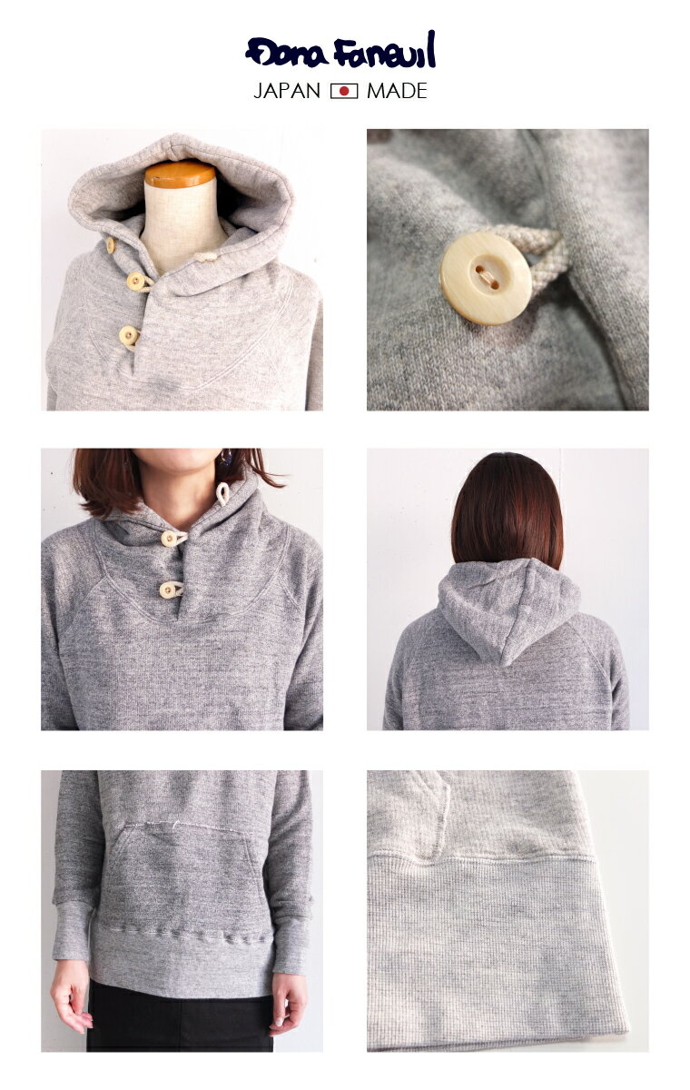 【12月2日10時までBlack Friday Sale 10%OFF】 ダナファヌル Dana Faneuil ガーゼ 裏毛 パーカ パーカー カットソー 無地 スウェット Made in Japan レディース 柔らかガーゼ裏毛の3つ釦パーカー d5821403