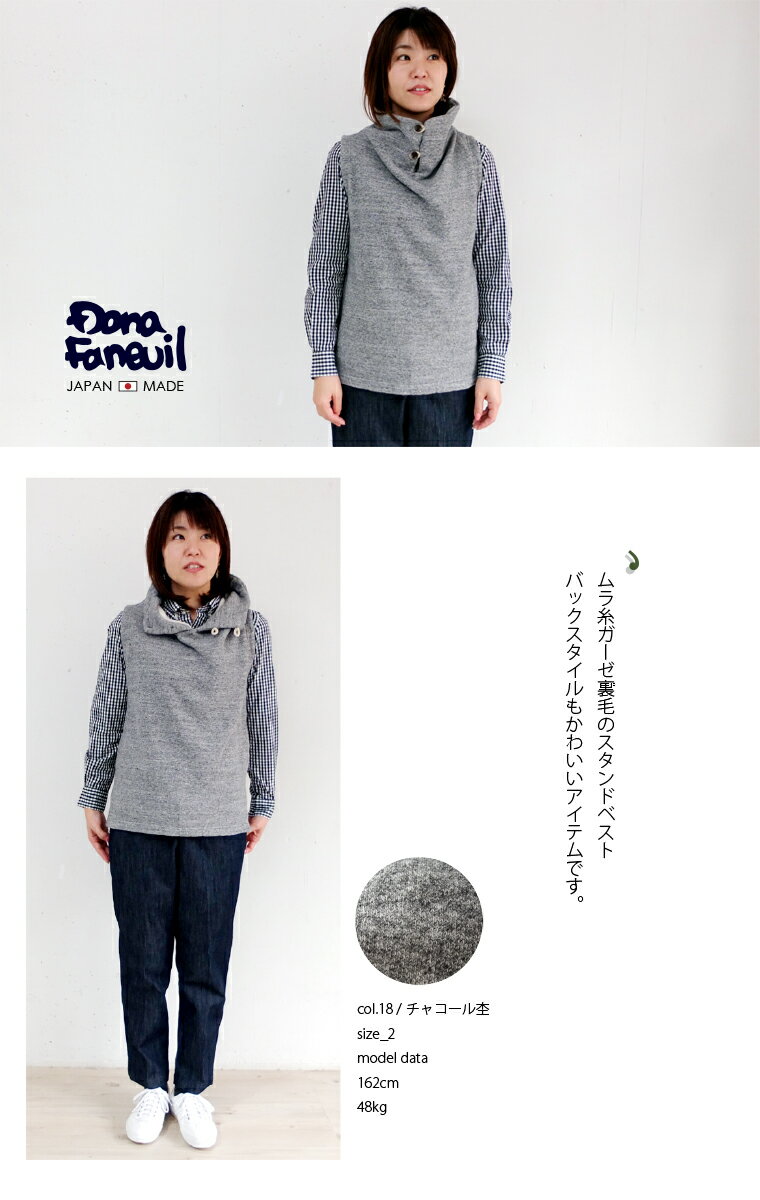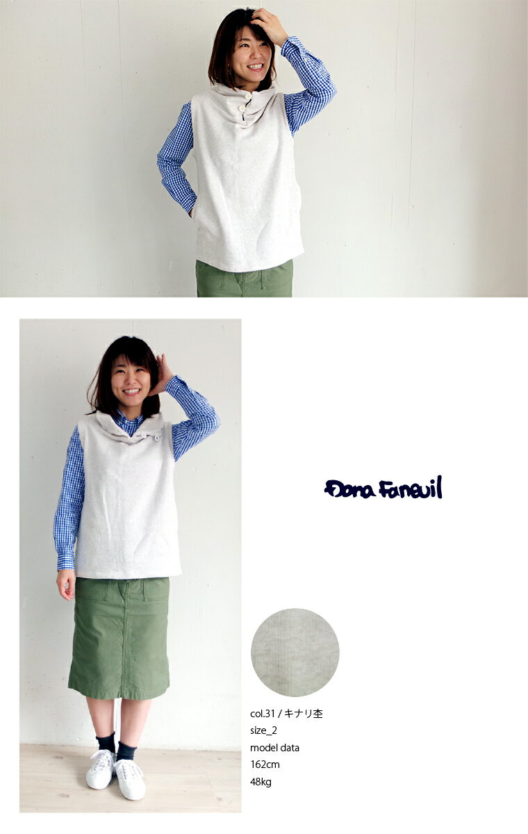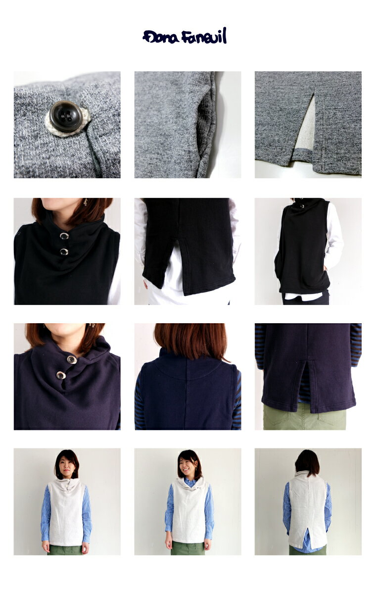 [A] ダナファヌル Dana Faneuil ムラ糸 ガーゼ裏毛 裏毛 ベスト スタンド ノースリーブ スウェット カットソー 日本製 柔らかガーゼ裏毛のスタンドカラーベスト D2722301