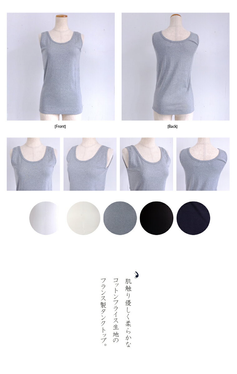 【12月2日10時までBlack Friday Sale 10%OFF】 シャントクレール CHANTECLAIR フランス製 フライス 無地 タンクトップ カットソー FRANCE レディース フランス製大人な無地タンクトップ